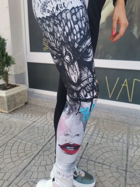 Women’s leggings with an author’s print of elastic breathable fabric. Suitable for sports and leisure.
