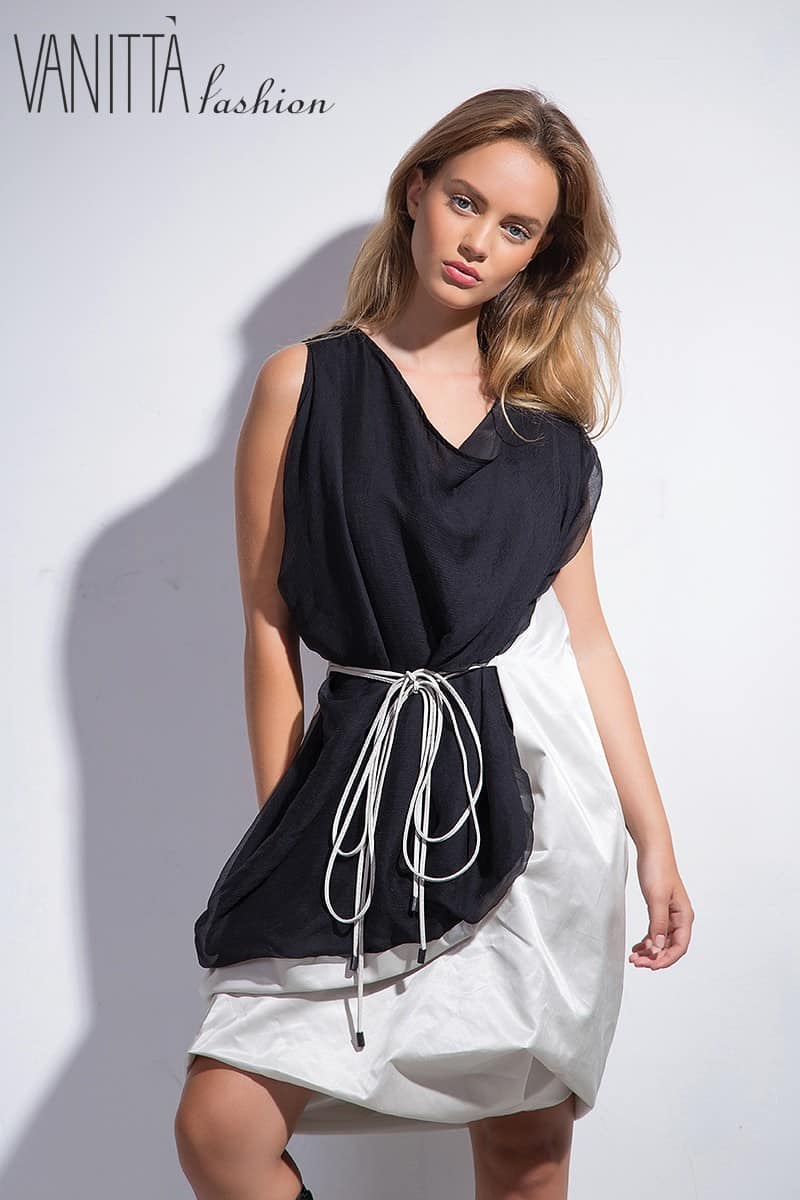 Asymmetrical ladies dress made of silk and taffeta. For ladies with imagination and style, willing to be different.