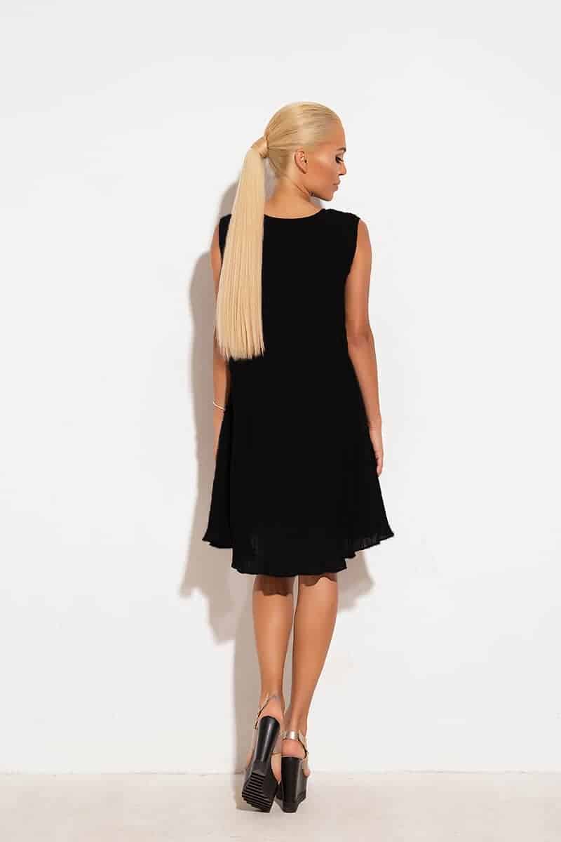 Long ladies dress, made of elastic light fabric, slightly raised in the back. She can dress in several ways. The pattern is one size and is suitable for XS, S, M, and L shapes.