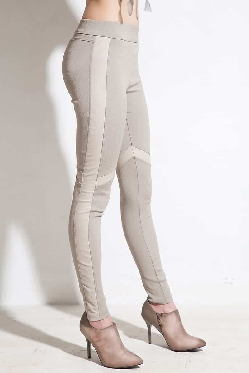 Elegant ladies leggings made from very warm to the touch elastic fabric containing silk. There is a leather strip at the sides and front above the knee. Very handy and stylish, suitable for every day.