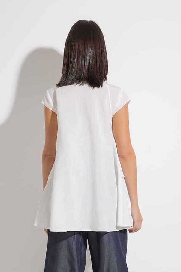 Extravagant ladies shirt made of fine cotton. The model can be converted into a variety of variants, using the many buttons located in the four lower parts of the shirt.