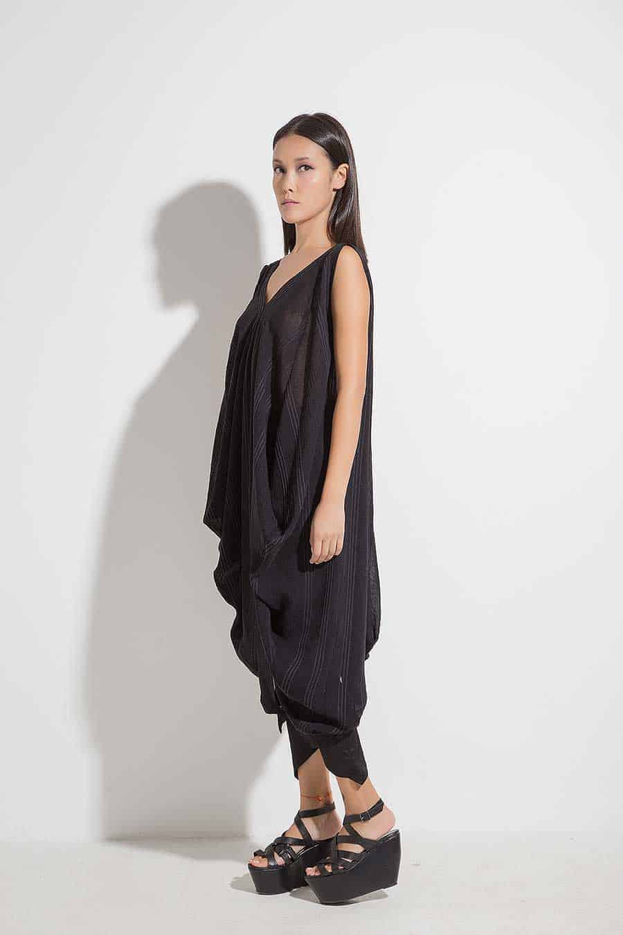 Elegant ladies tunic made of cotton, sleeveless, with belt, asymmetrical interesting silhouette. Suitable for any type of figure, available in different colors.