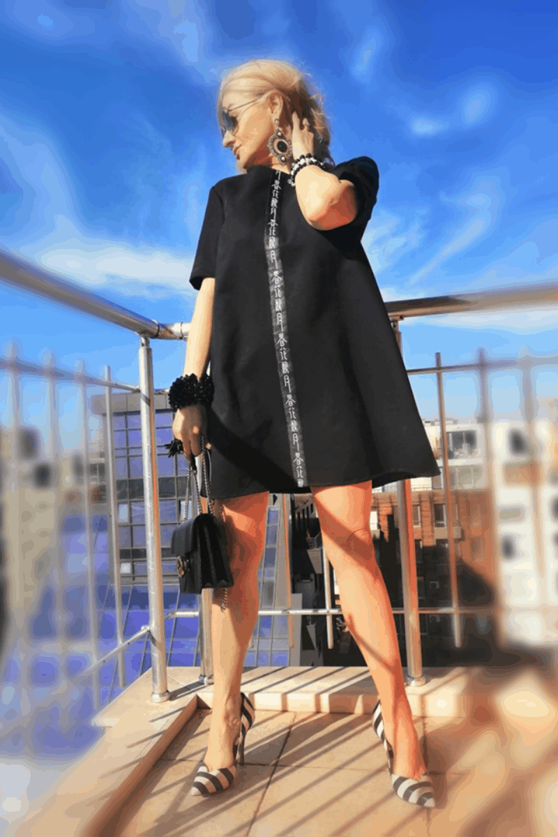 Wide ladies blouse made of high quality cotton with sleeves of interesting elastic fabric. Free cut with elastic at the bottom, suitable for any shape.