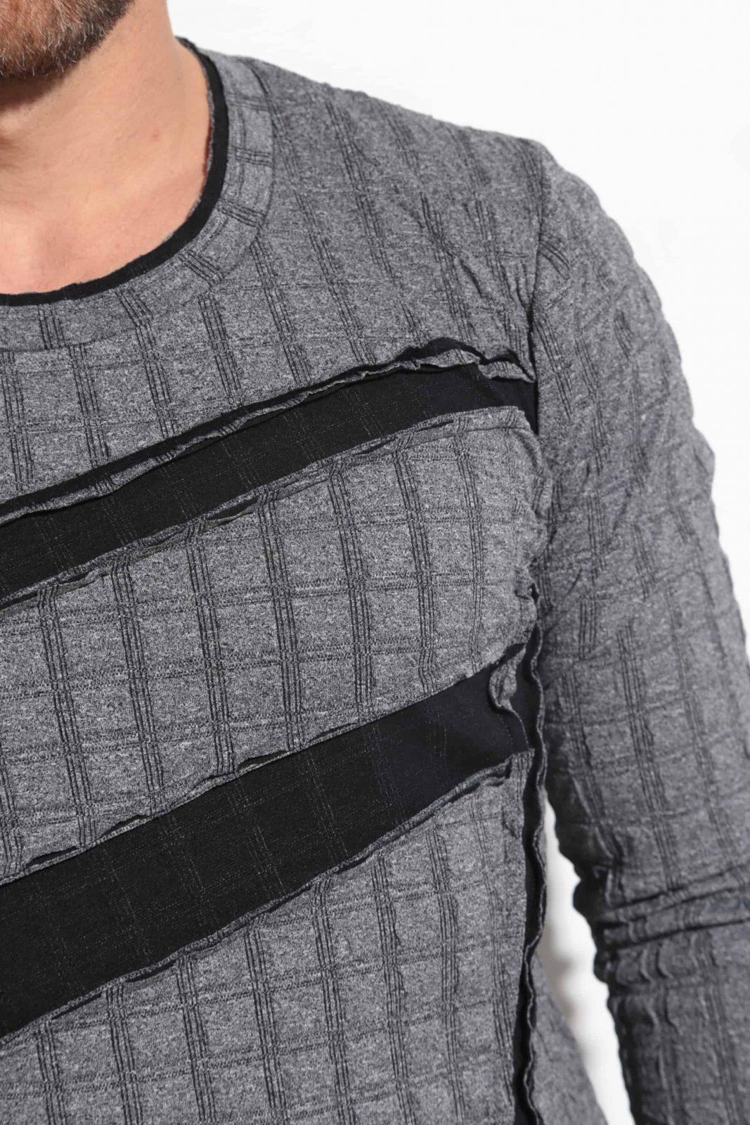 Sporty-elegant men’s blouse made of elastic fabric with interesting external stitching at the front.