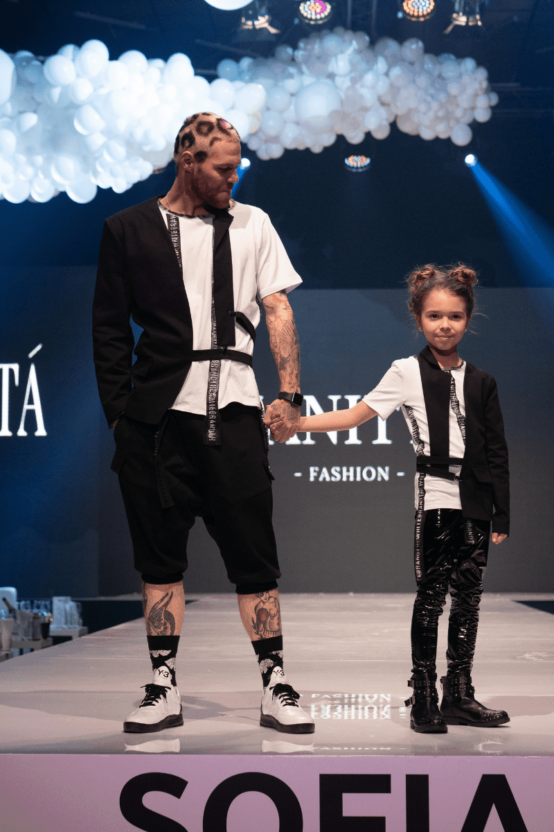 Extravagant one-sleeve men’s jacket with belt fastening.
