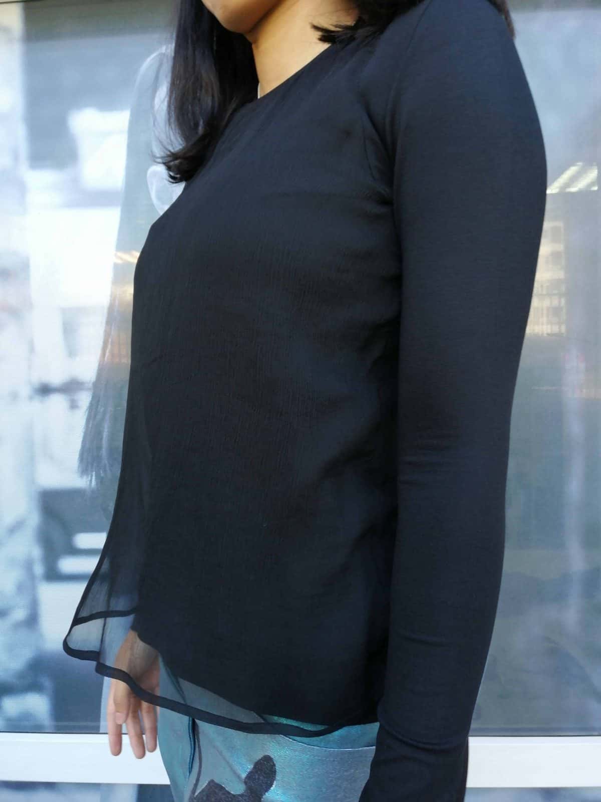 Elegant women’s blouse made of viscose with a detail of silk chiffon in front. Gentle and stylish, suitable for every day.