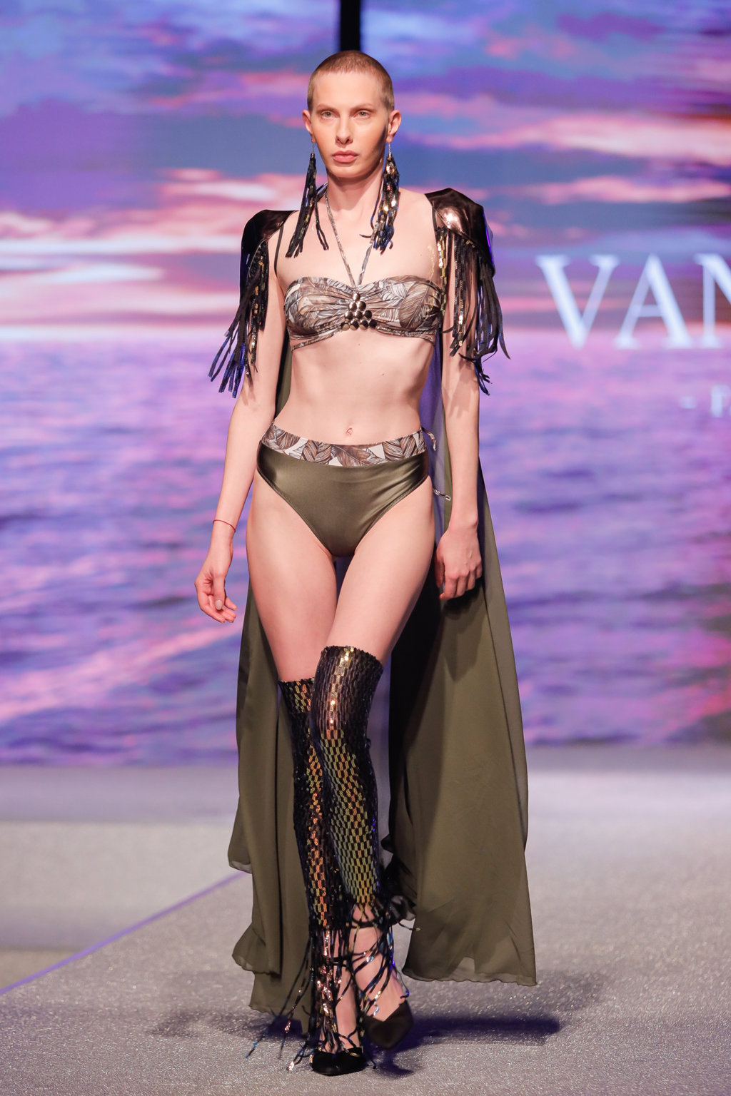 Long ladies vest made of elastic natural fabric. Extravagant vision and innovative cut.