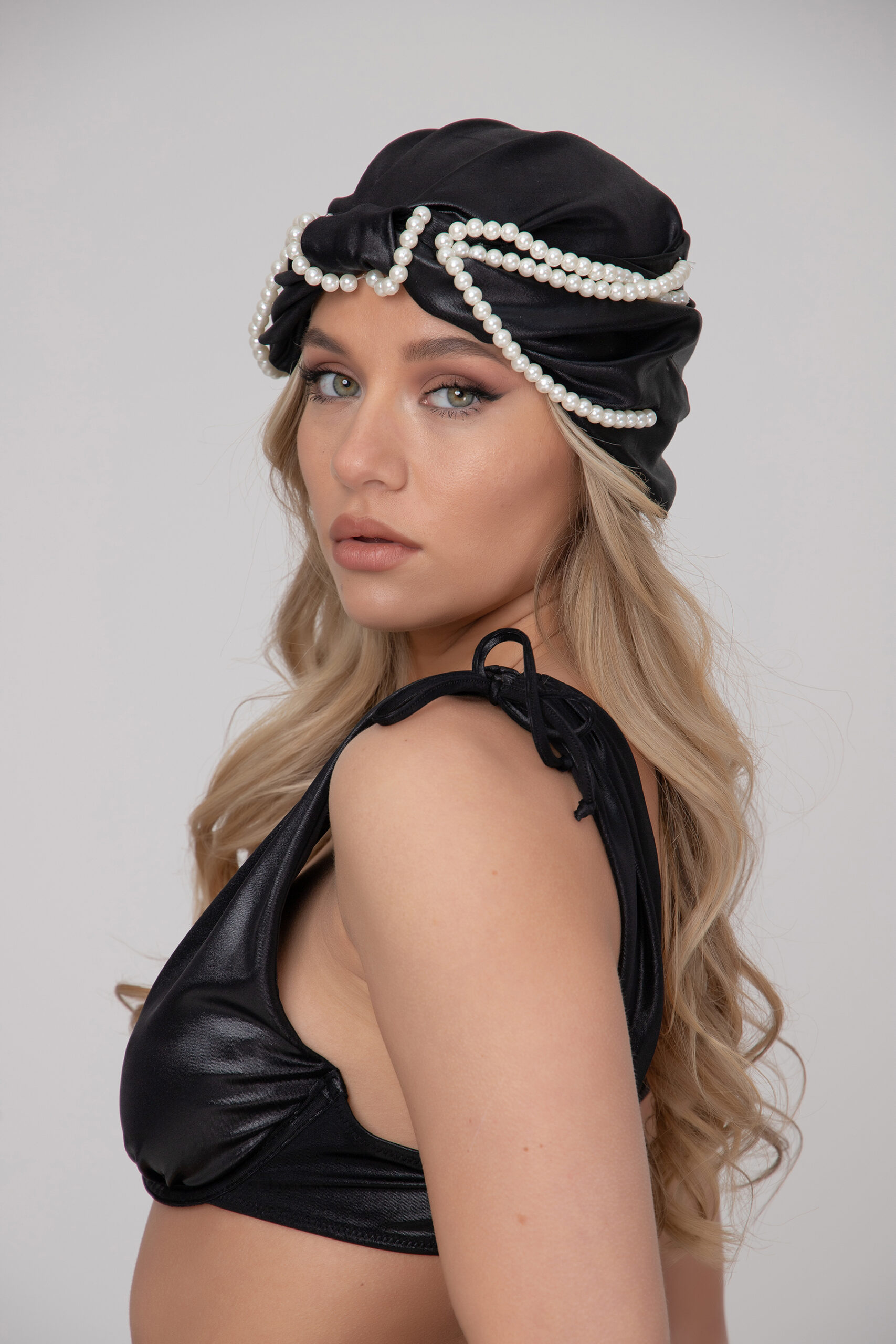 Be the pearl of the beach with this stylish and super sexy swimsuit, in classic black. Pattern outlining your figure.