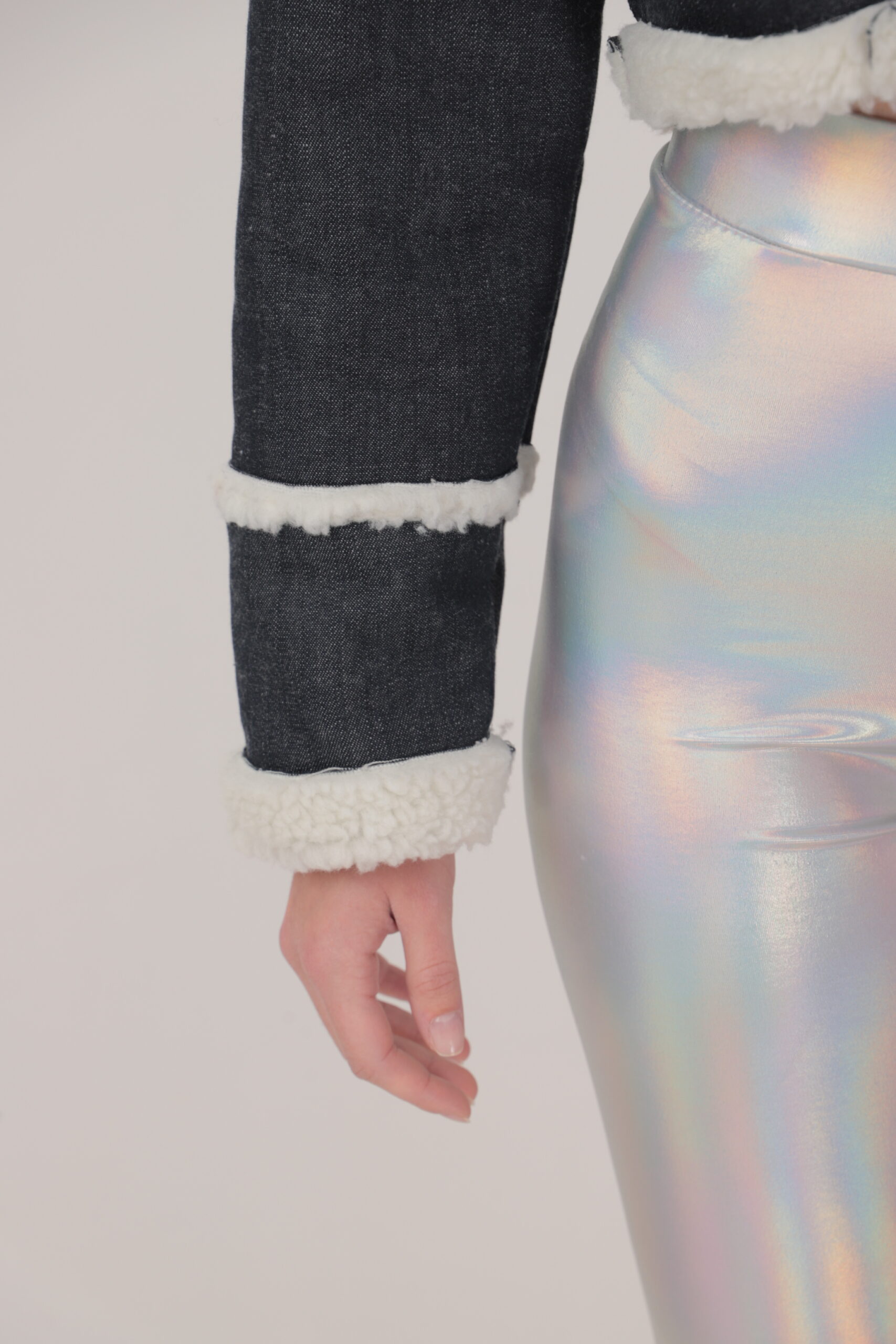 Sporty-elegant ladies jacket made of thick elastic fabric with leather details. Extravagant vision suitable for any type of figure.