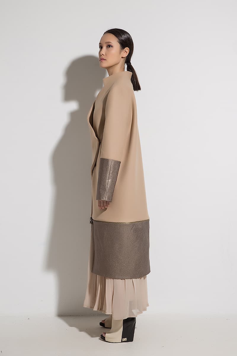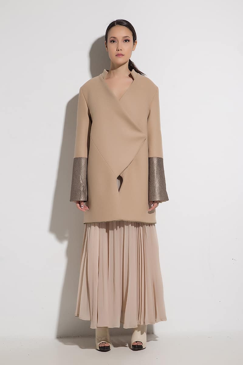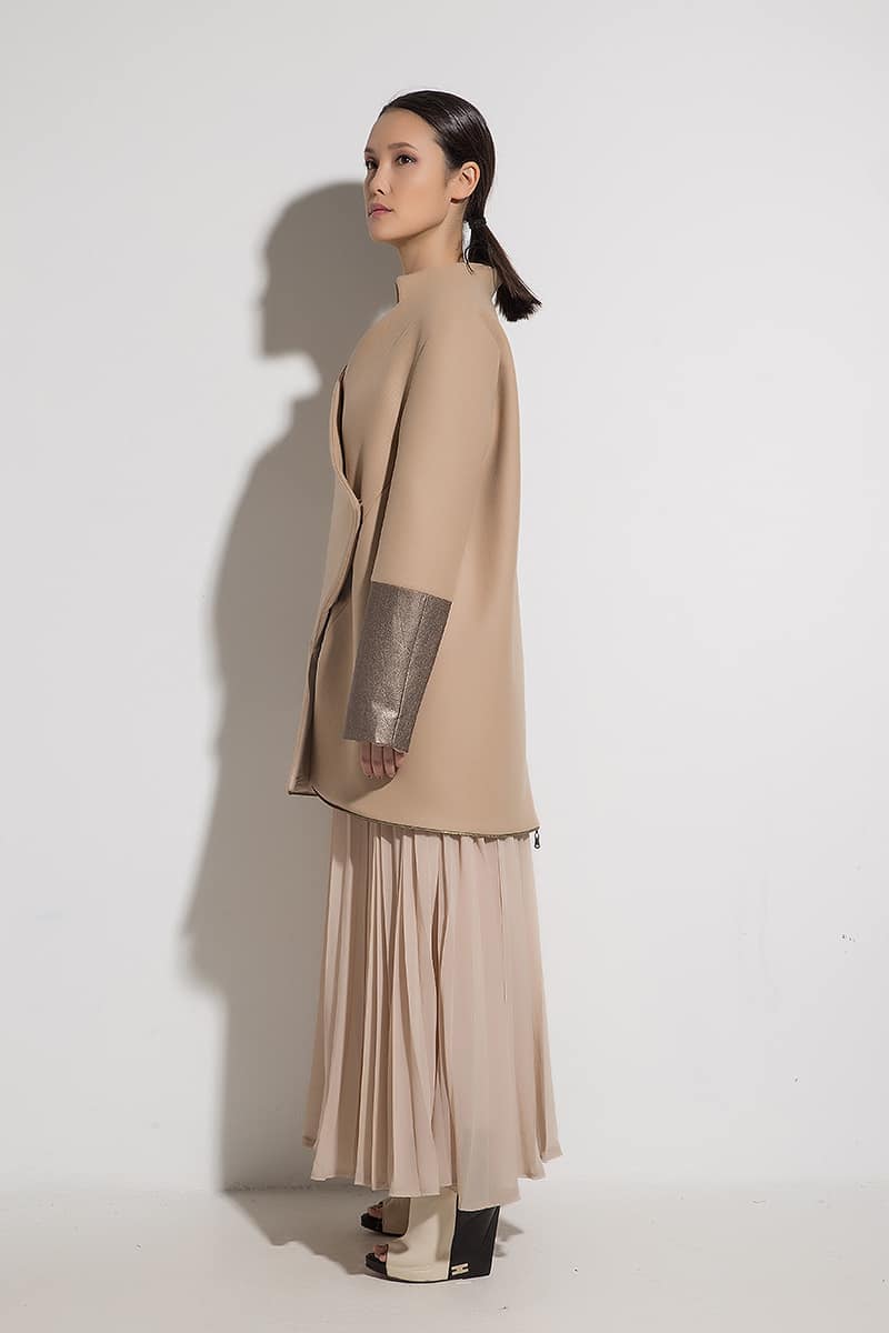 Sporty-elegant ladies jacket made of thick elastic fabric with leather details. Extravagant vision suitable for any type of figure.