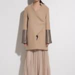 Long ladies cardigan made of soft and pleasant to the touch knitting with an interesting detail at the bottom. With a large collar and belt. Suitable for every day.