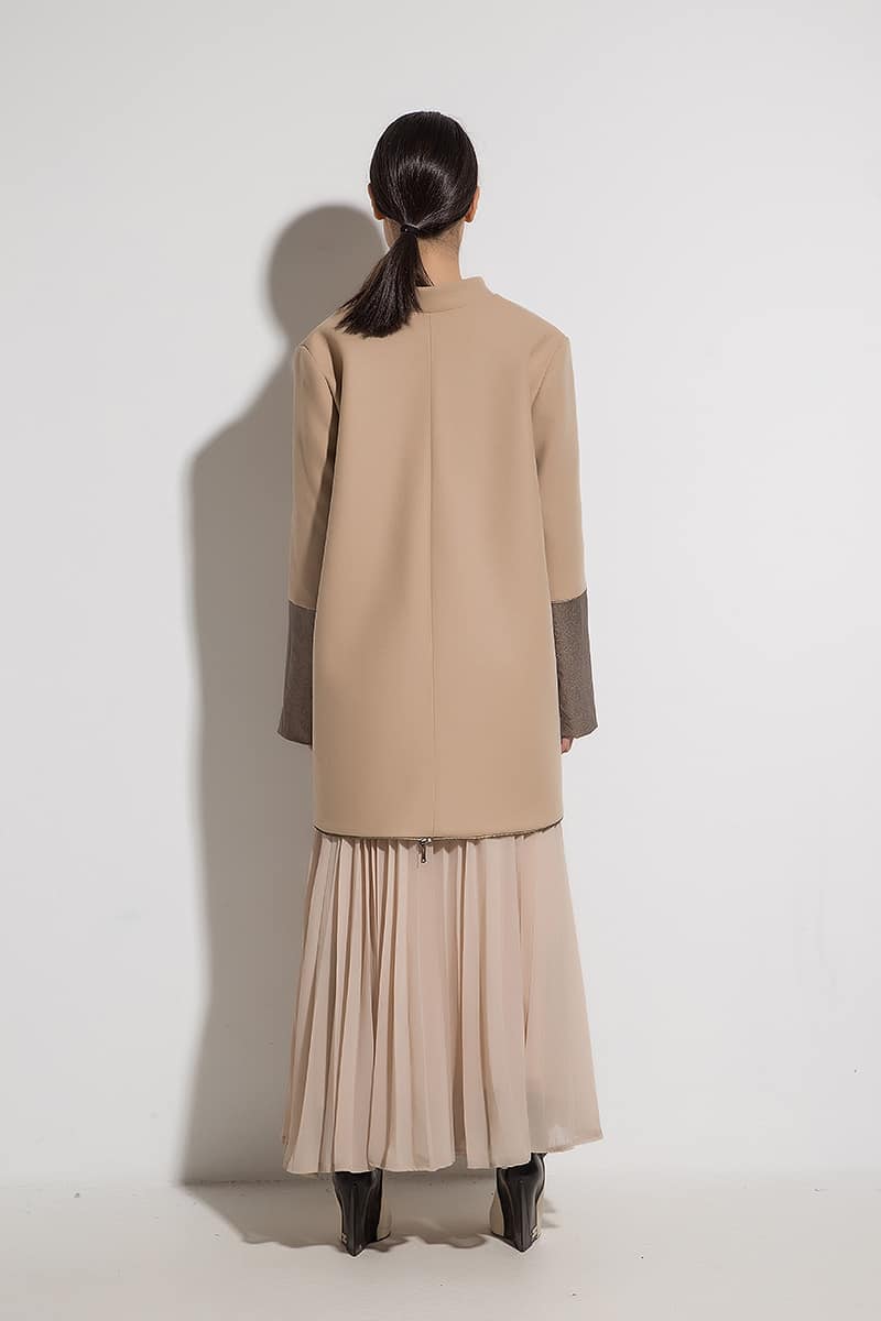 Elegant ladies jacket made of soft woolen fabric with beautiful sequin detail at the bottom. A modern and extremely practical model for every type of figure. Waisted cut and effect of unfinished hems front.