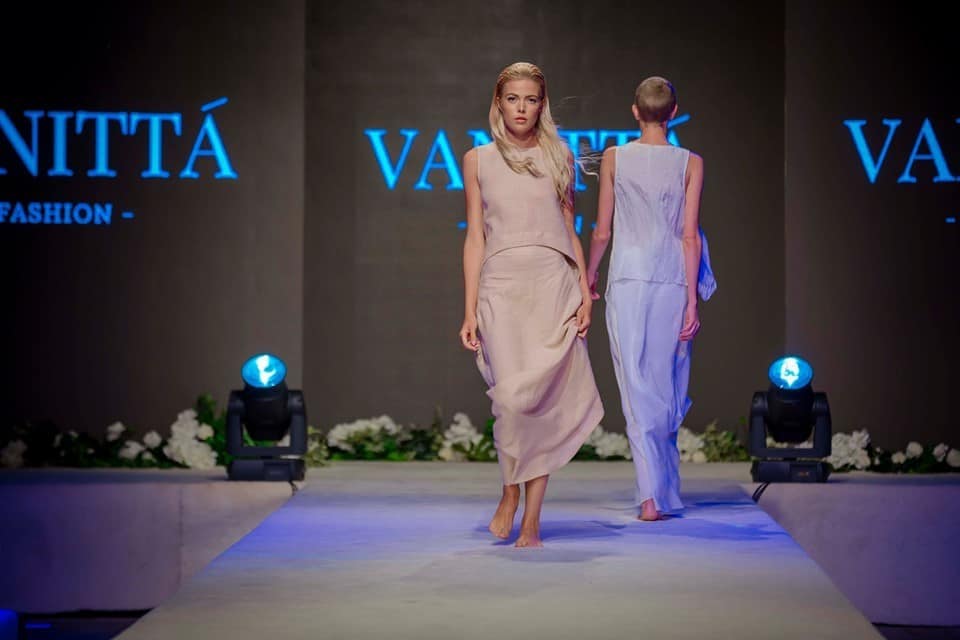 Long ladies dress, made of elastic light fabric, slightly raised in the back. She can dress in several ways. The pattern is one size and is suitable for XS, S, M, and L shapes.