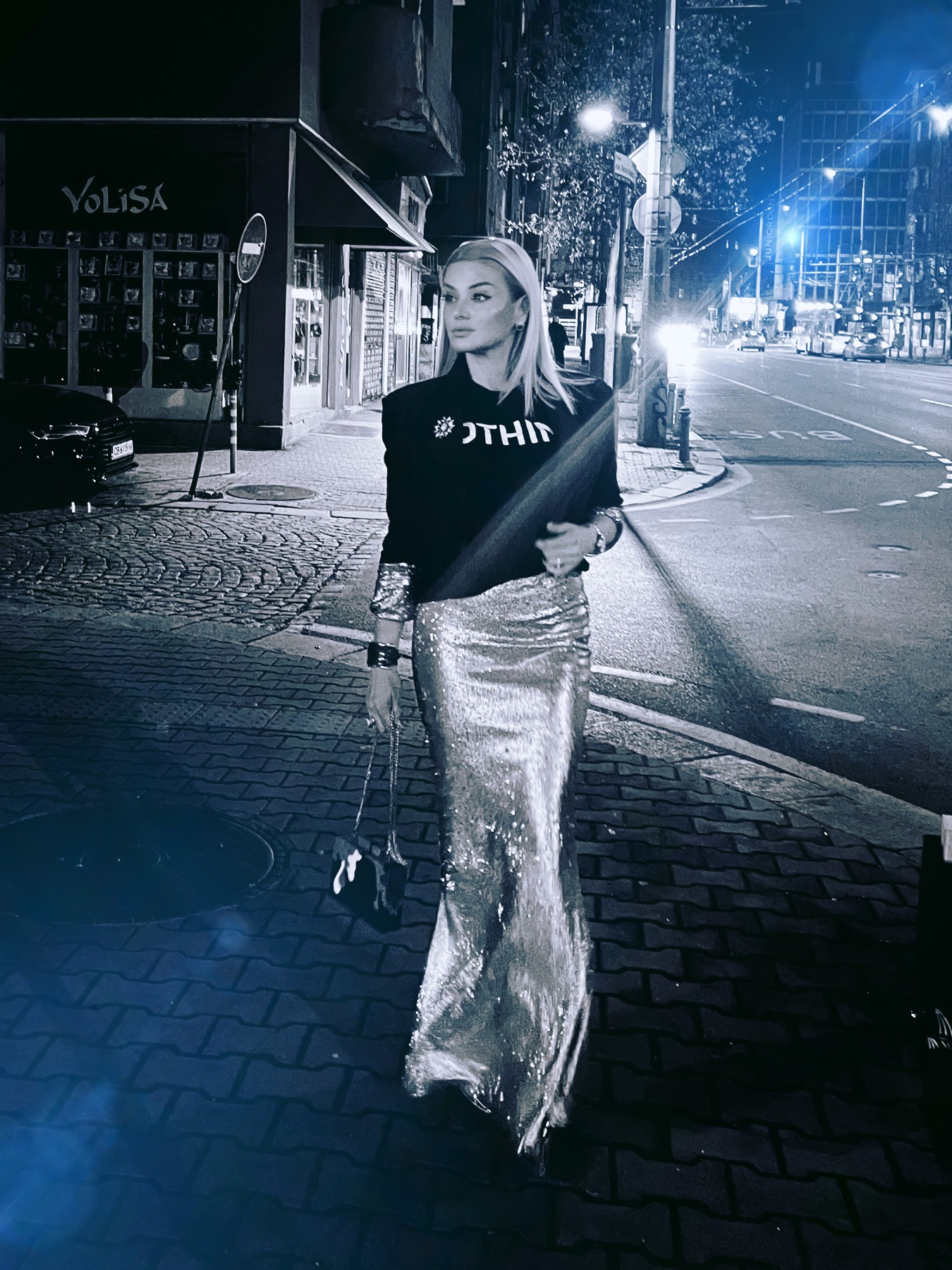 The skirt is made of fine matte silver sequins with elastic, soft and transparent lining.