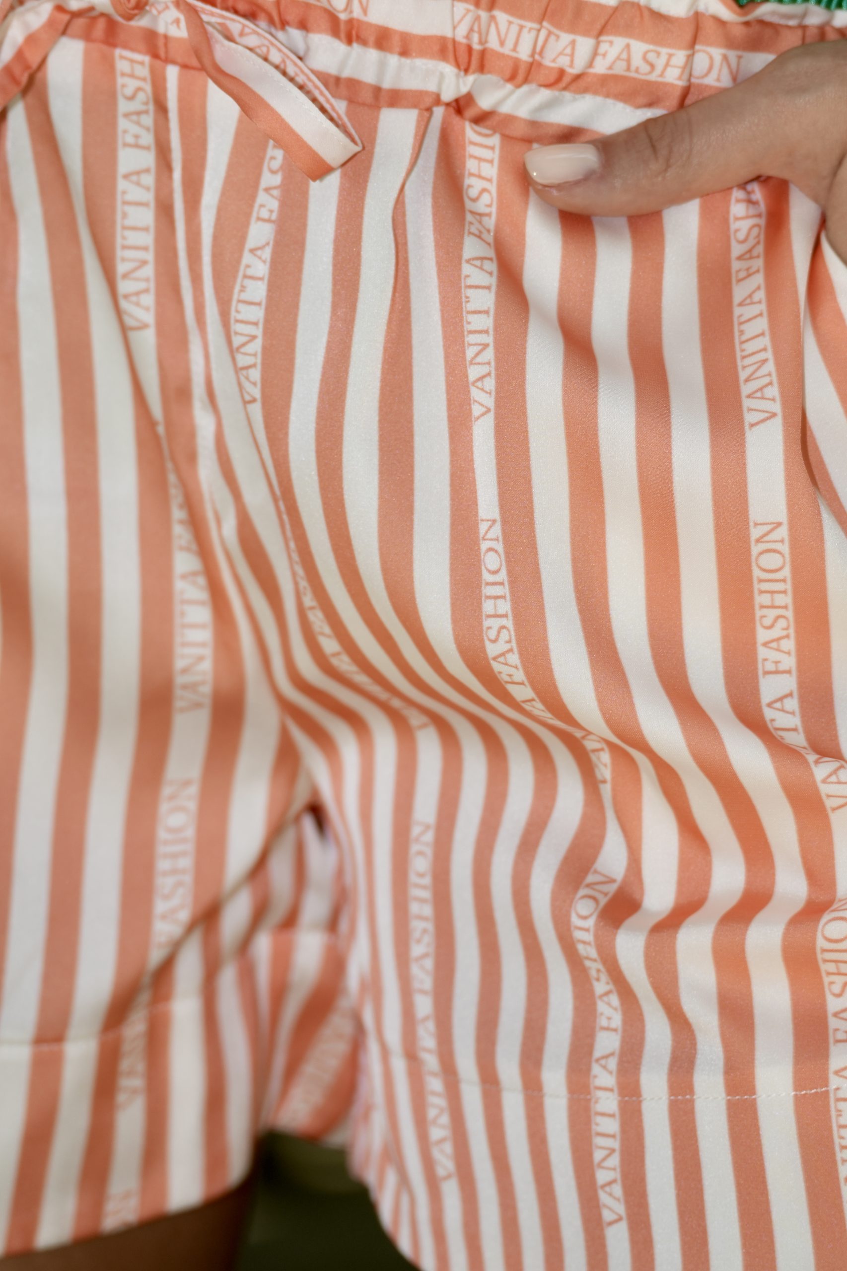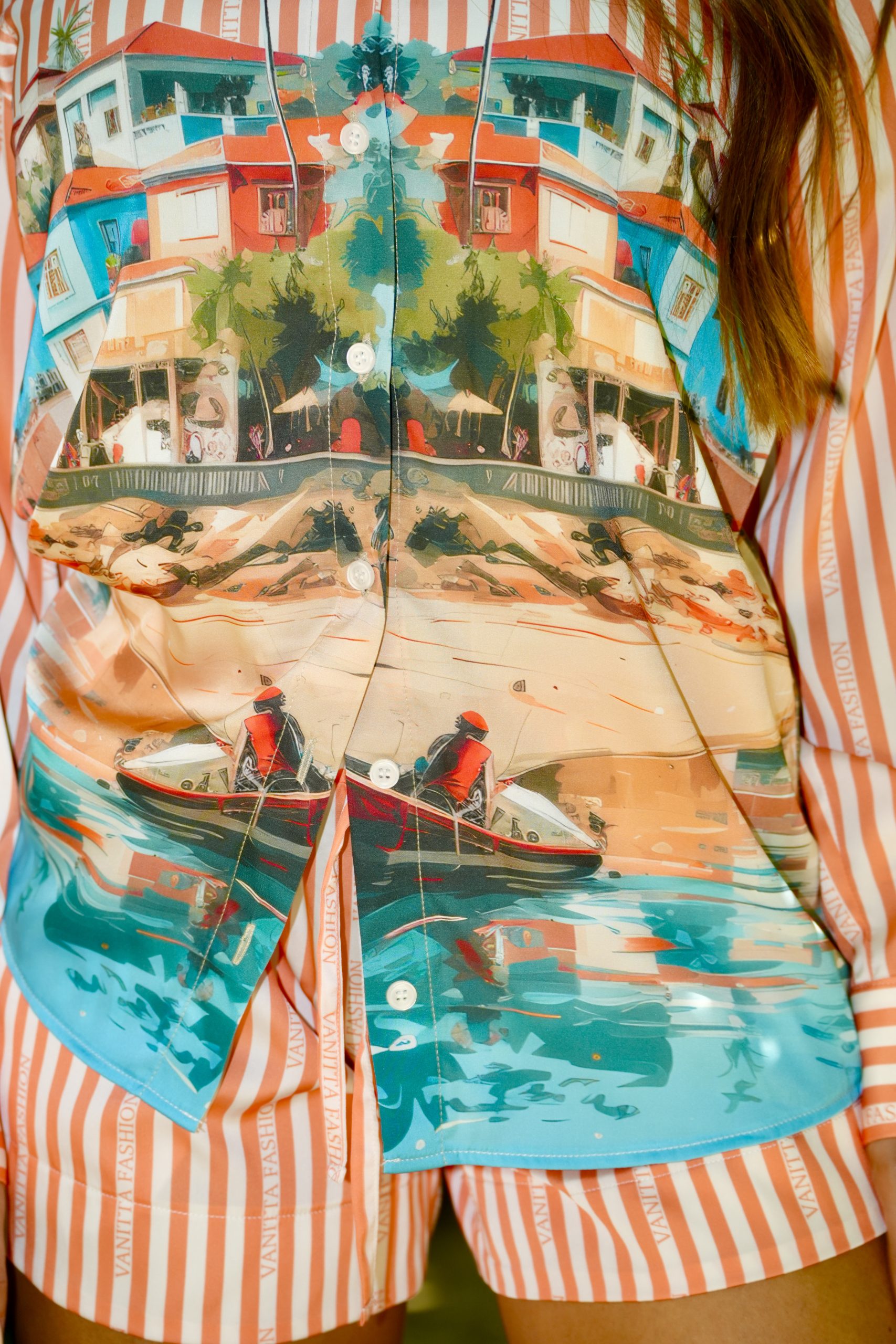 A fresh and stylish set of fine satin, consisting of a loose long-sleeved shirt and shorts. The model impresses with an original exotic print, combined with delicate stripes, which give it a modern and artistic character. The light fabric with a gentle sheen provides comfort and elegance, making the set a perfect choice for a chic beach or vacation look. ✨