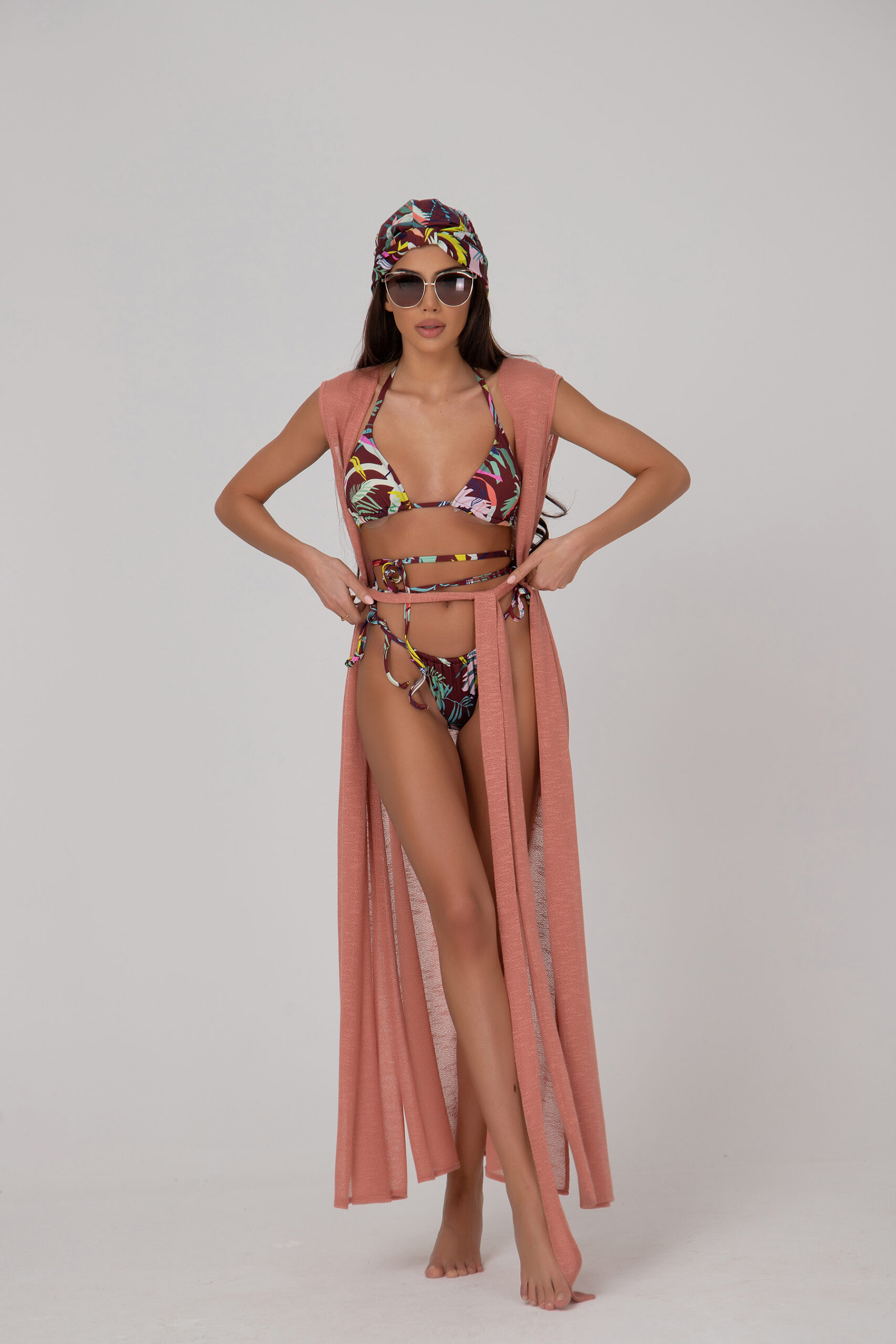 The tunic has an additional belt with a straight silhouette and deep slits.