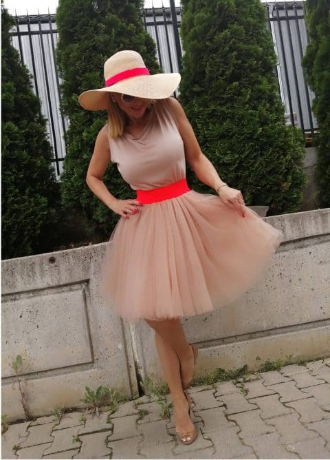 Short lady’s skirt made of soft multi-layered tulle in ecru color with a spectacular elastic belt.