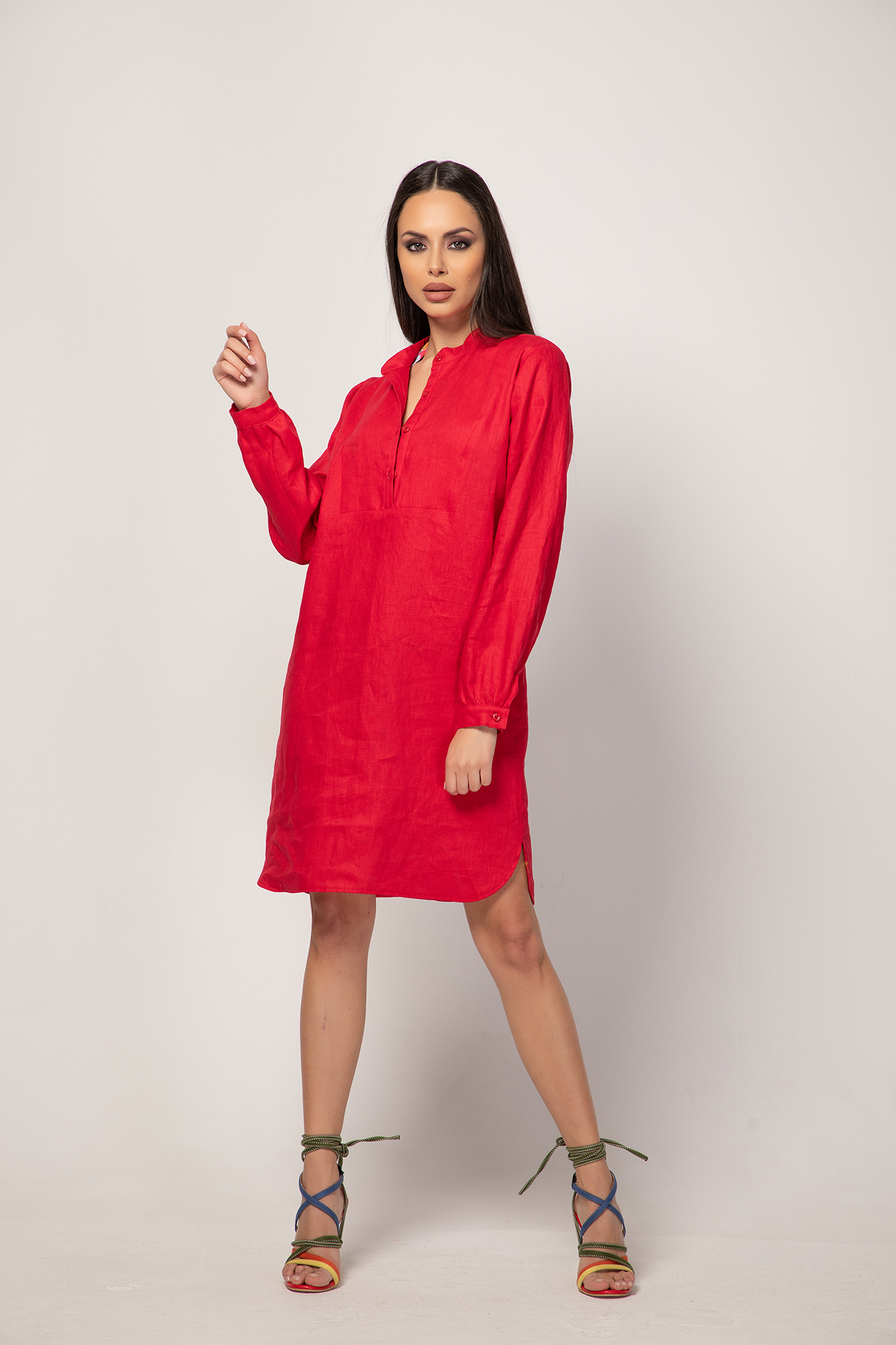 Дълга дамска ленена риза в разнообразни наситени цветове, изработена от 100% ЛЕН.
