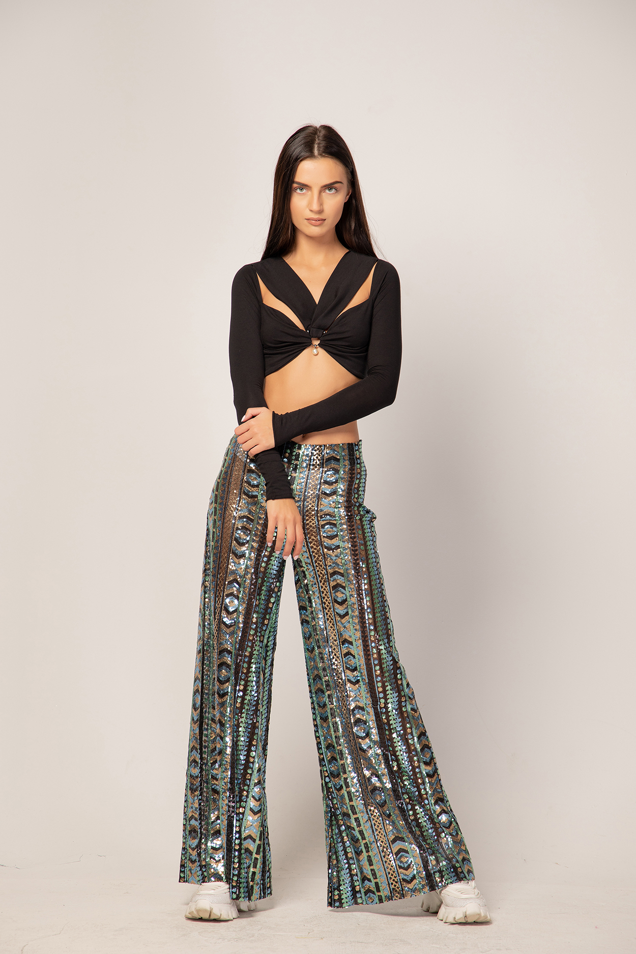 Идеална за комбинация с тесни панталони, кожен клин или пола с висока талия — подходяща както за вечерни излизания, така и за модни фотосесии.
