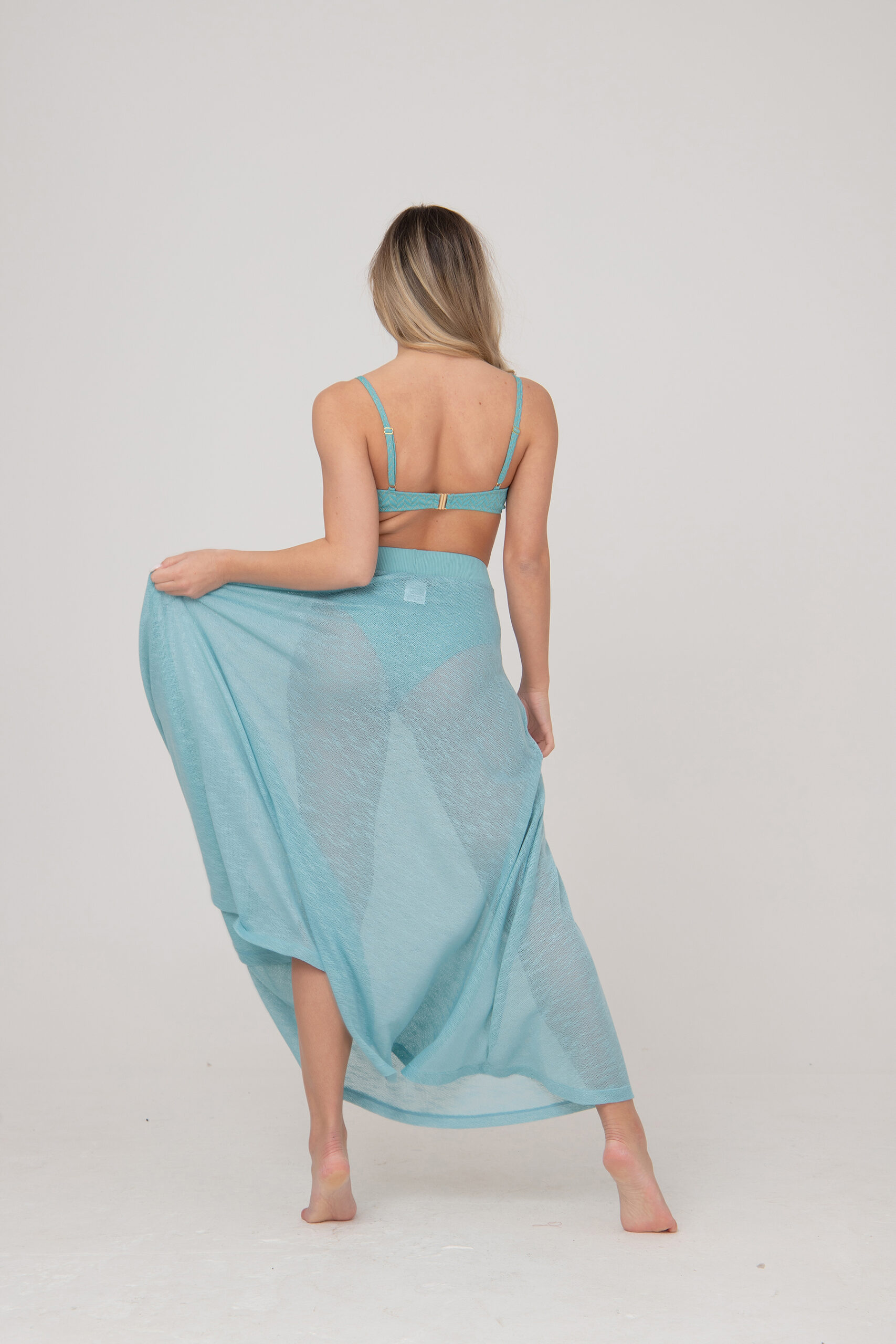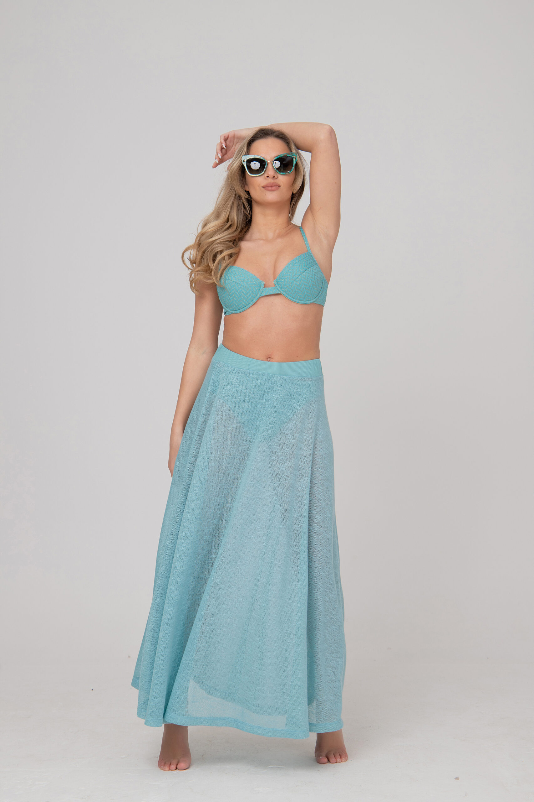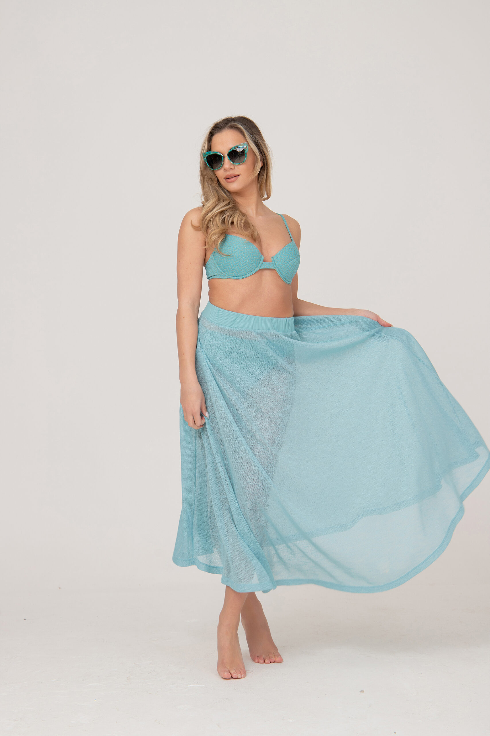 Плажна пола, изработена от фино плетиво с дискретна лъскавина тип Lurex.