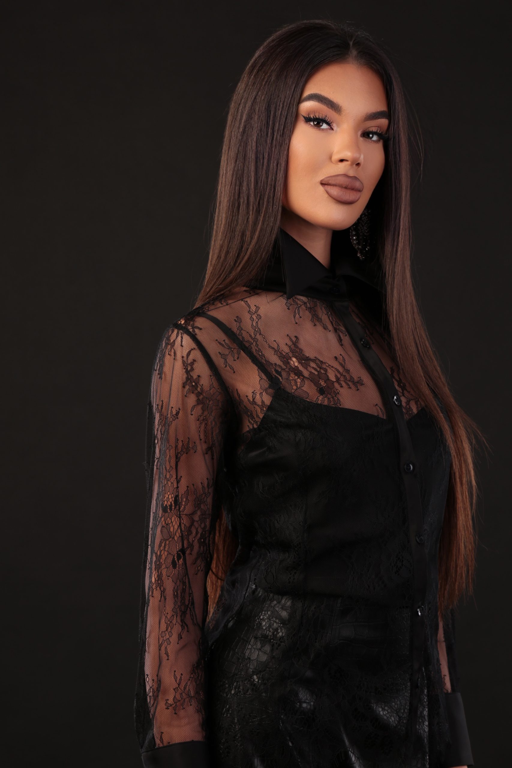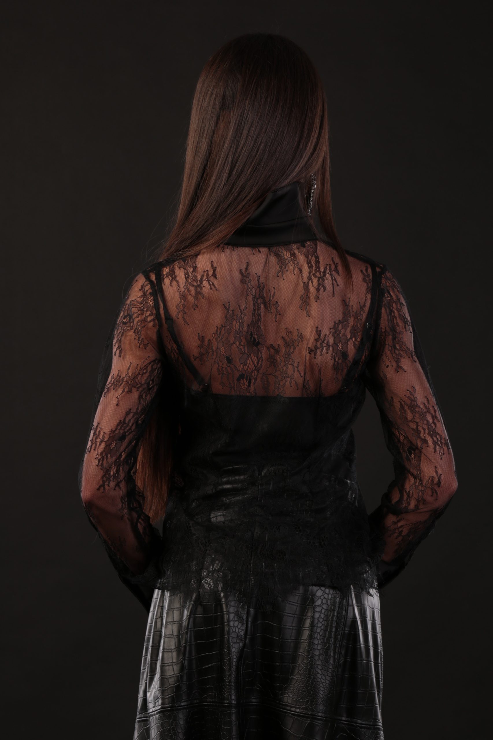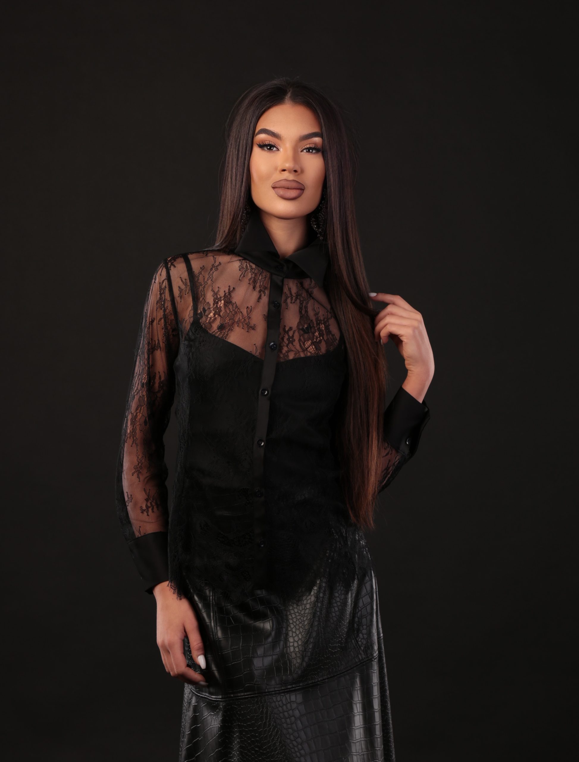 Красива и изключително елегантна риза, изработена от фина френска дантела, която носи усещане за лекота, мекота и абсолютен комфорт. Под нея нежно се подчертава сатенено потниче от фин сатен с регулиращи презрамки, което придава завършен и изискан силует. Комбинацията от прозрачна дантела и деликатен сатен създава официална, женствена и стилна визия — перфектна за специални поводи и впечатляващи моменти.