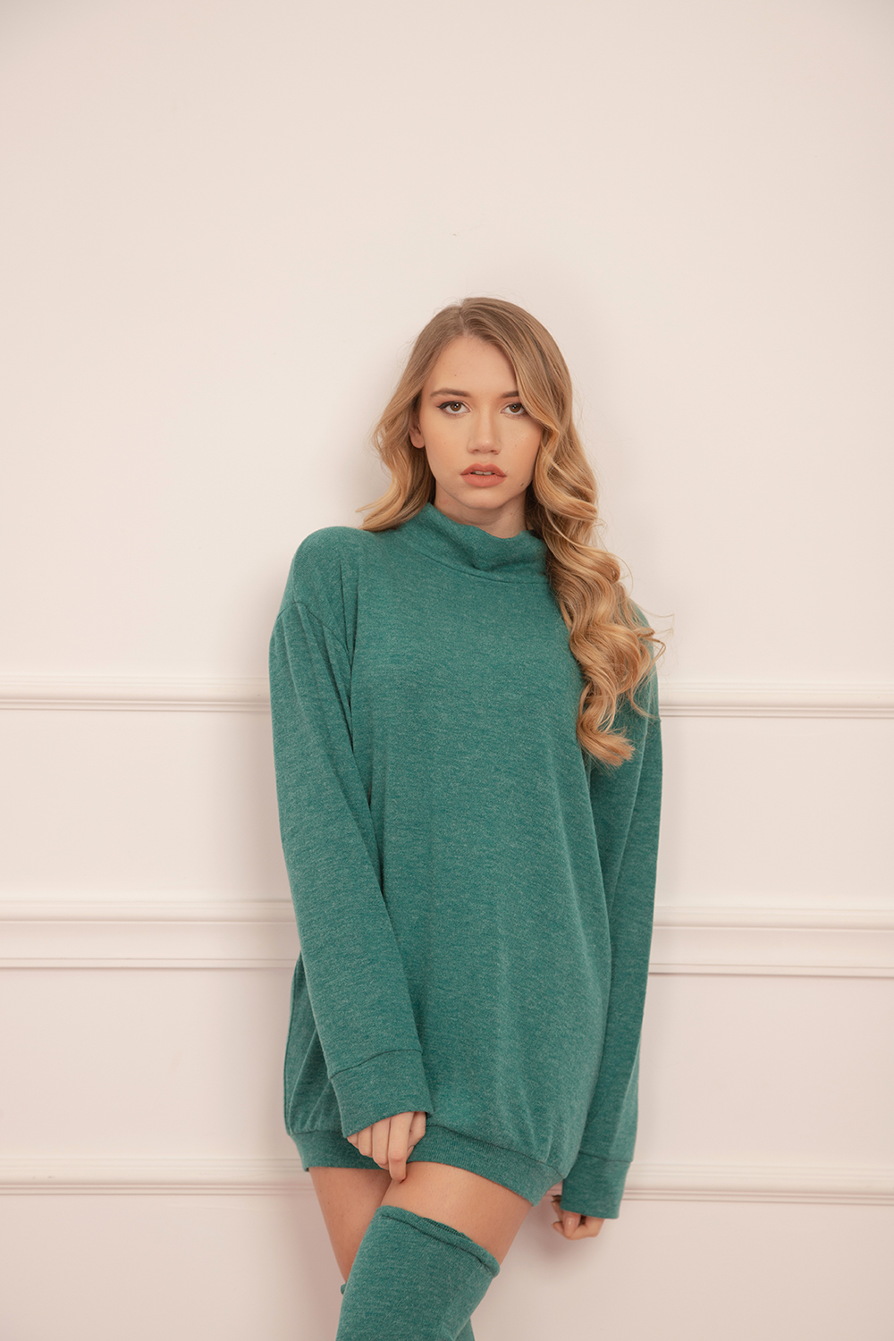 Широка дамска асиметрична туника с различни ръкави, изработена от тежко падаща материя. Моделът е подходящ за всеки тип фигура.