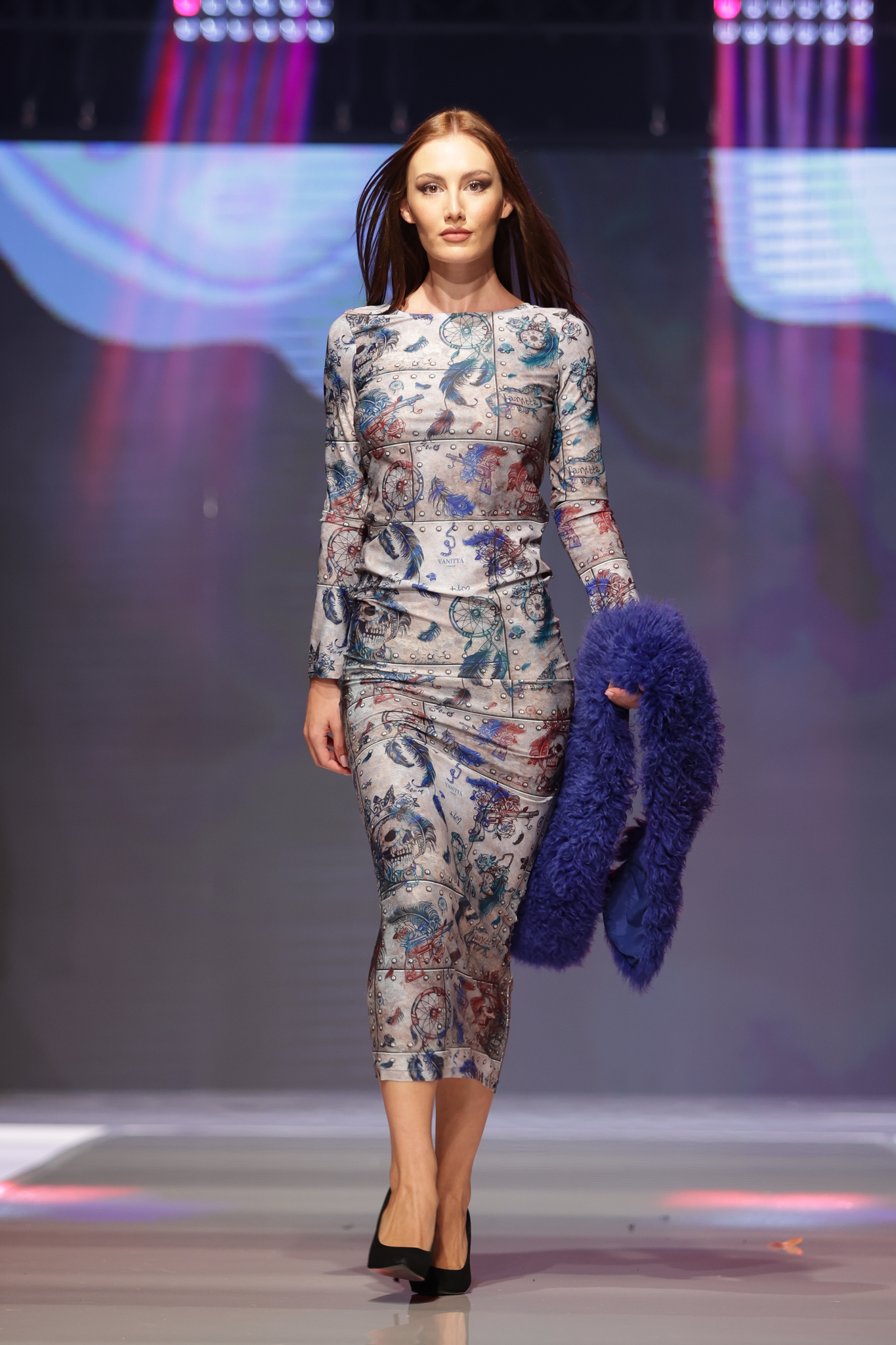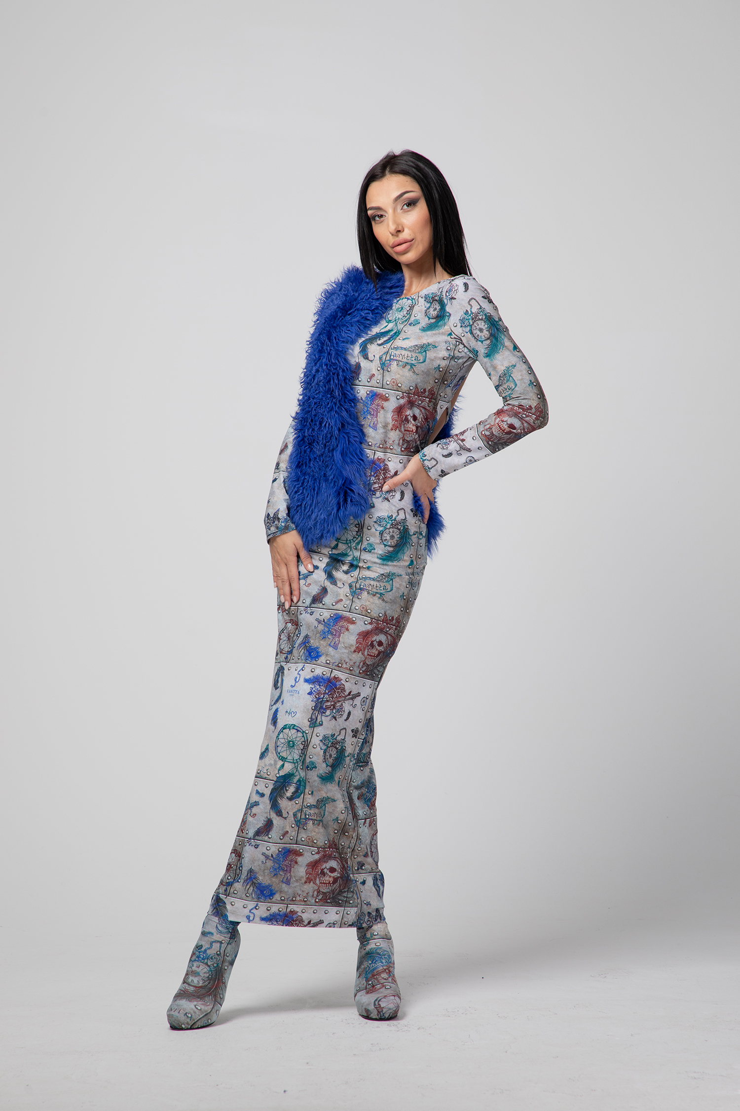 Изящна и красива, сексапила и стилна, рокля изработена за да подчертае женската красота и изящество. Роклята е изработена от авторски десен, фино трико с еластан.