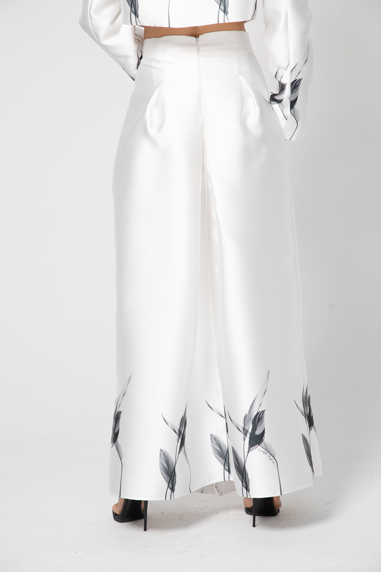 Полата е изработена от красив плат с елегантна луксозна лъскавина. Пенсовете в предната част придават линия на елегантност и изисканост, модерна кройка и шикозин силует. Висок колан и скрит цип в задната част на изделието.