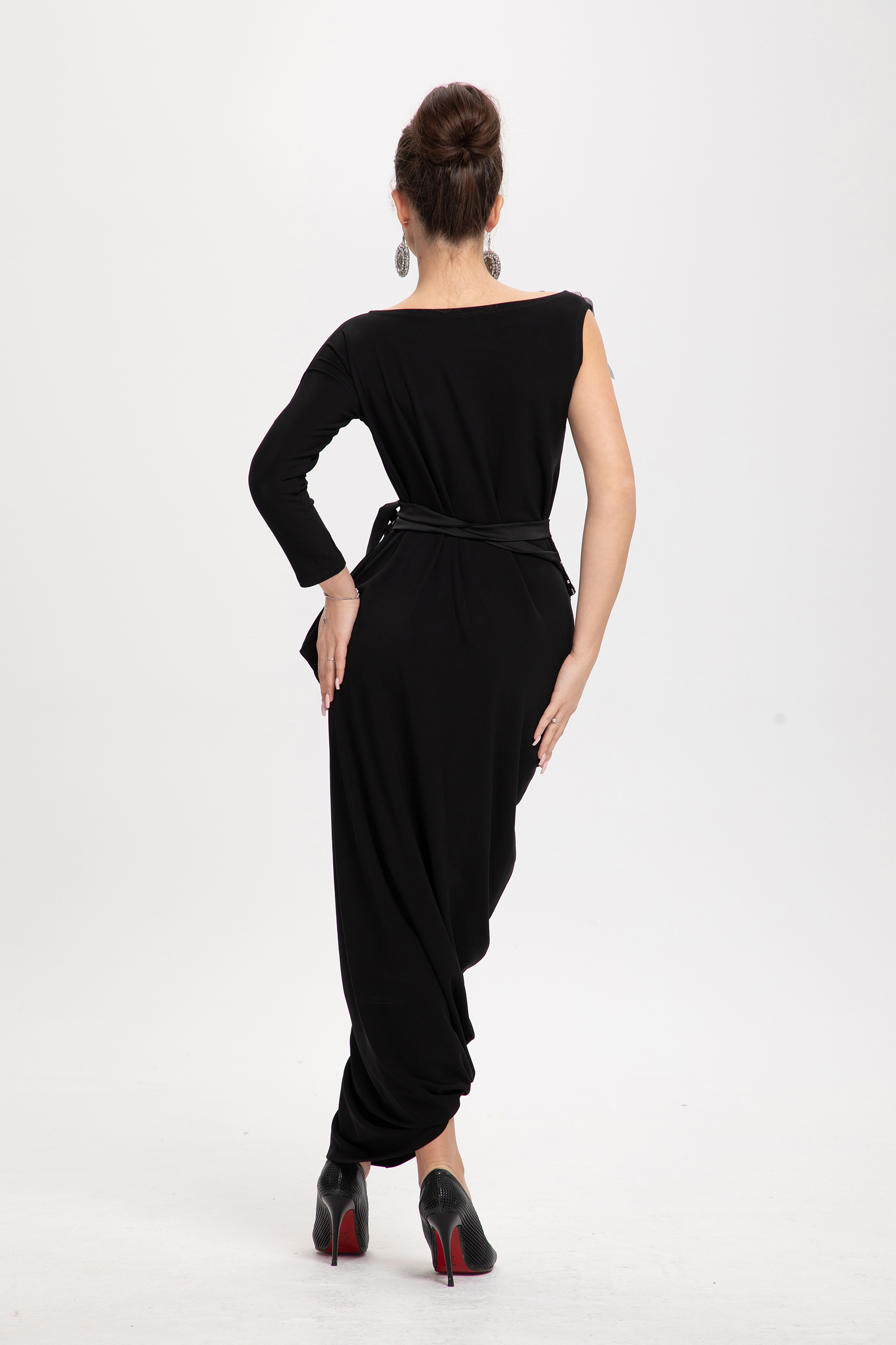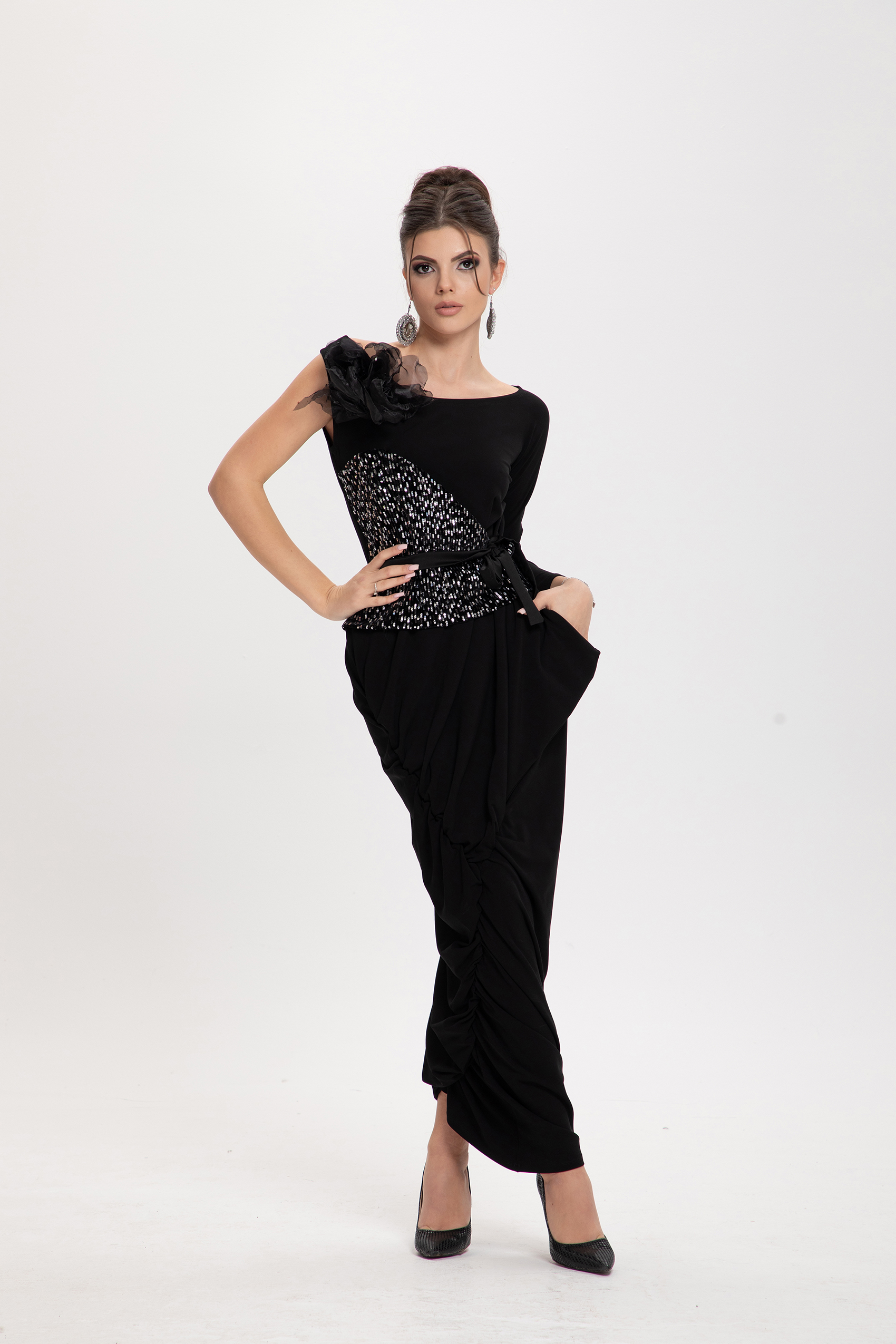 Красива и елегантна рокля от плътен еластичен плат с асиметричен силует.