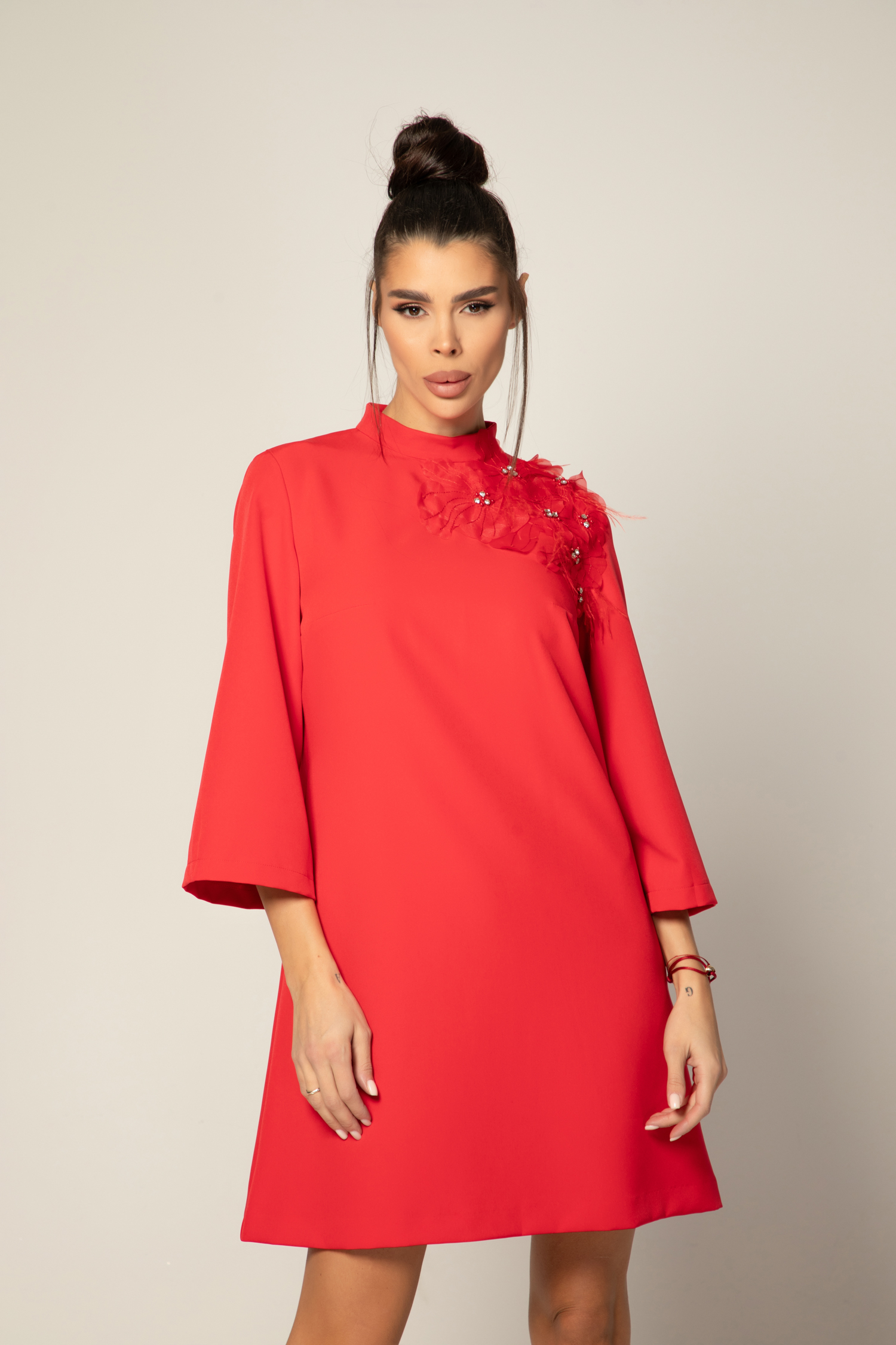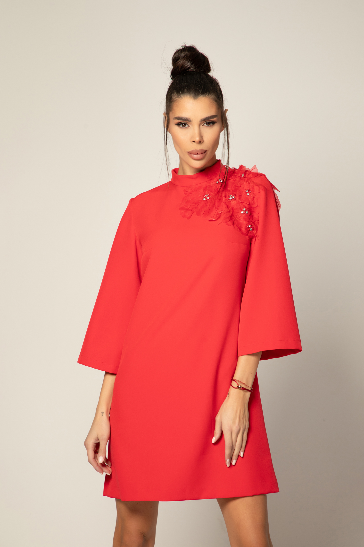 Роклята е със свободен силует, който подчертава женствеността и същевременно осигурява комфорт.