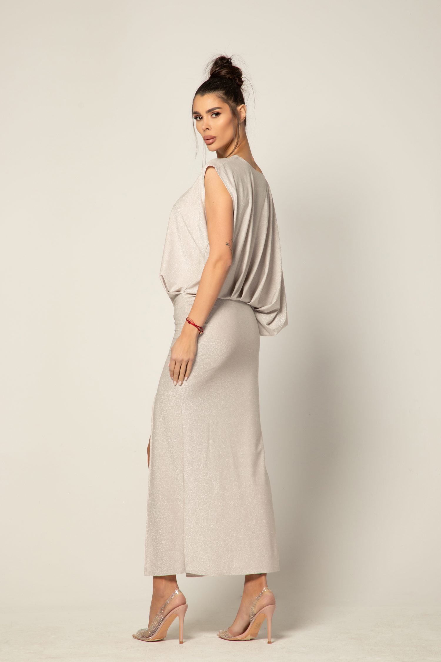 • Материя: Фино трико с бляскав ефект, което улавя светлината и добавя изискана нотка към цялостната визия.
