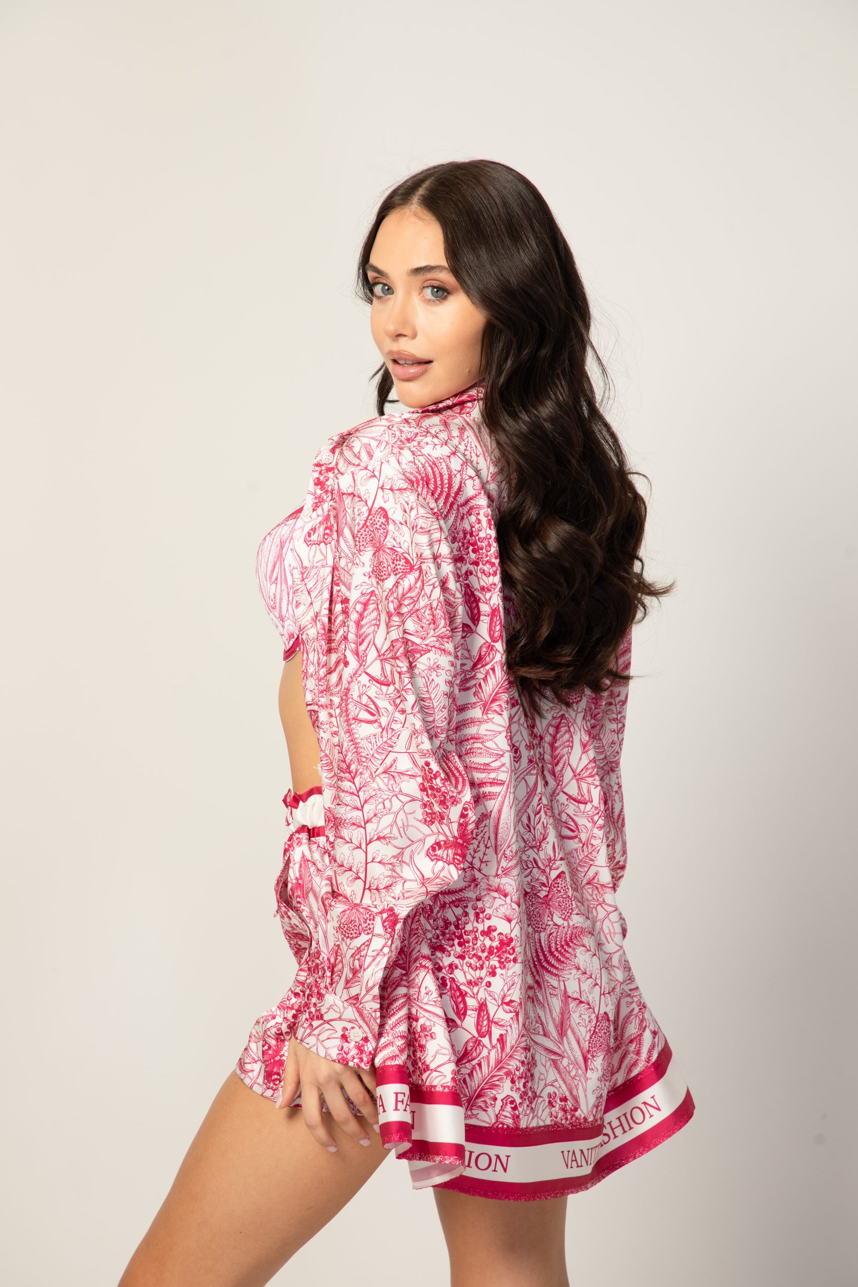 Дамска сатенена риза с авторски десен – свобода, стил и многофункционалност!