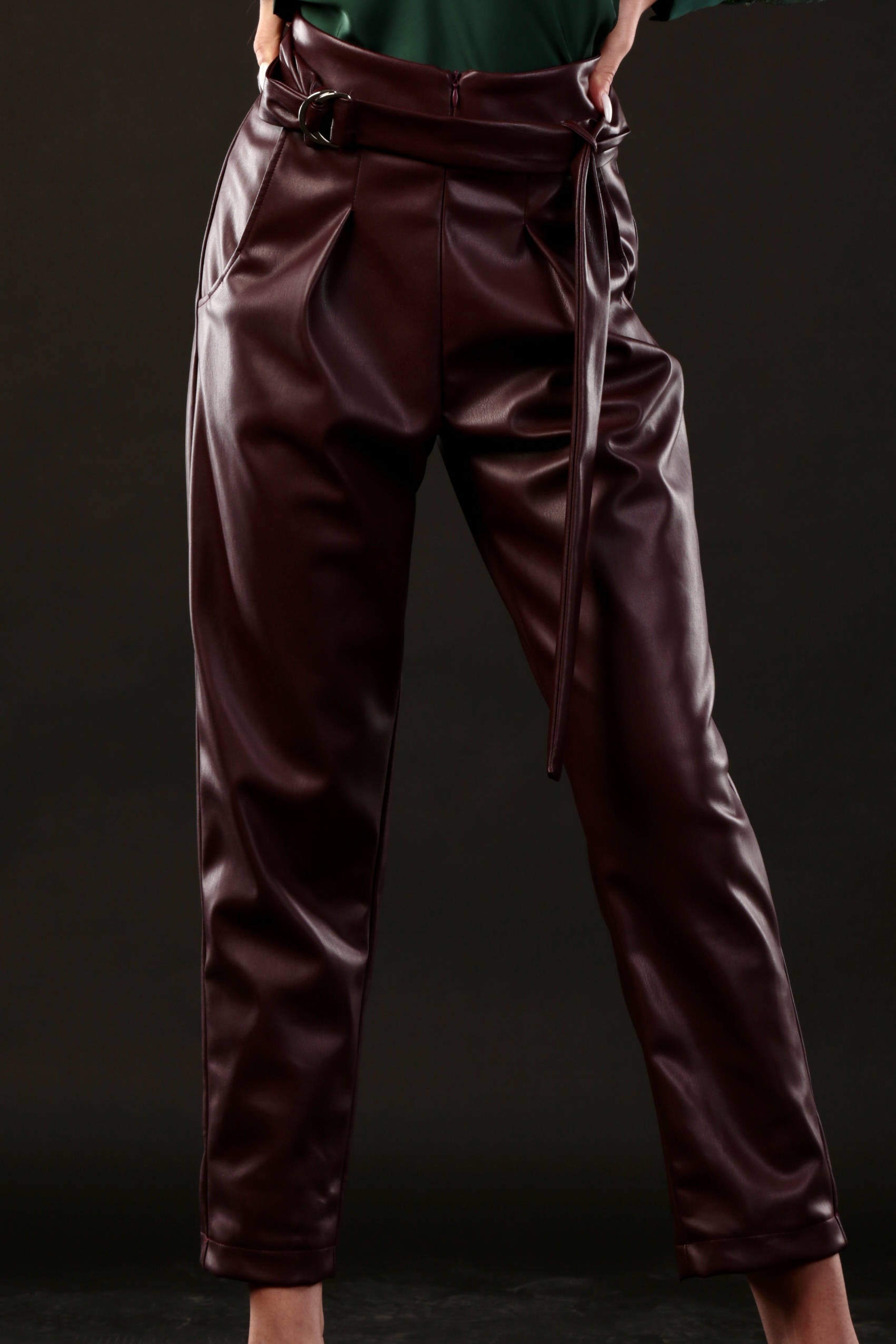 Красив кожен панталон , изработен в наситен бургундов цвят – модерен, богат и изключително актуален.