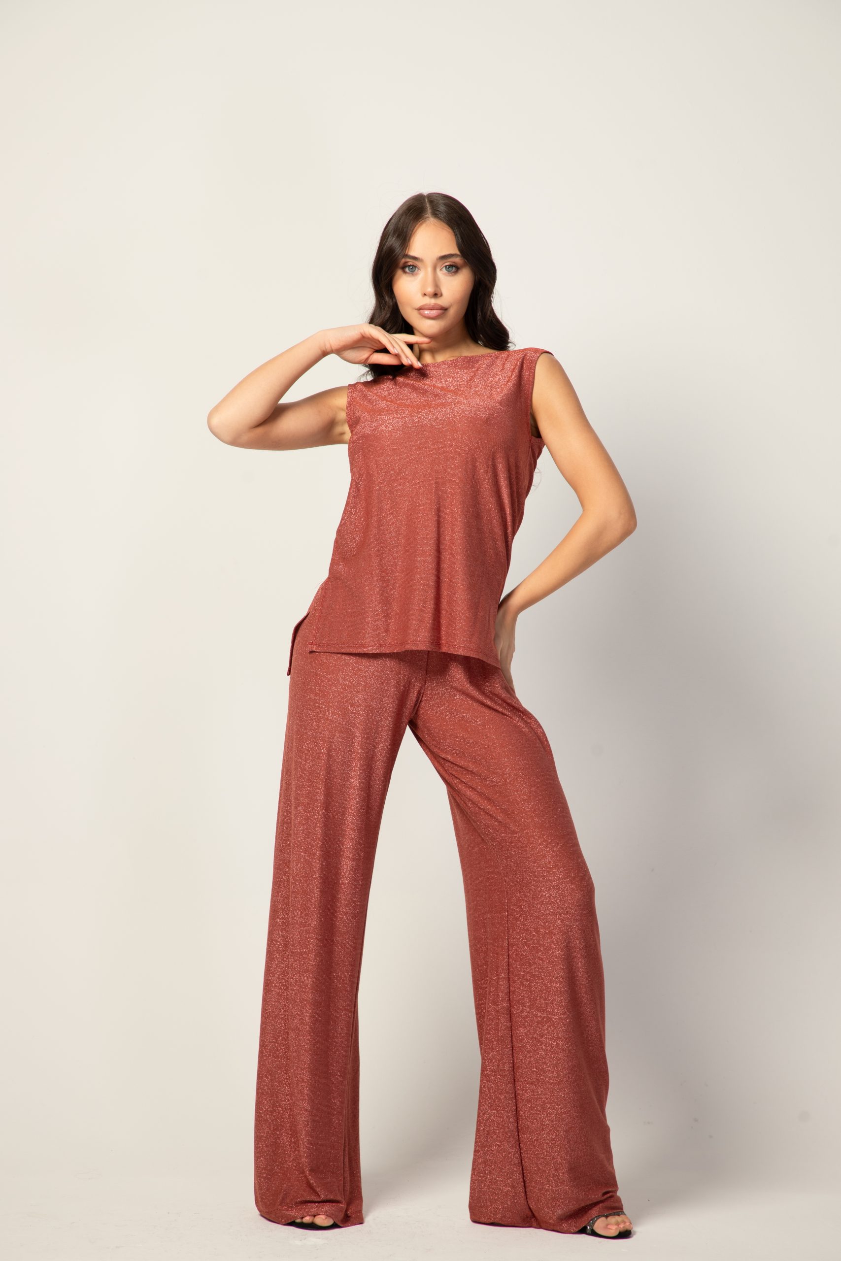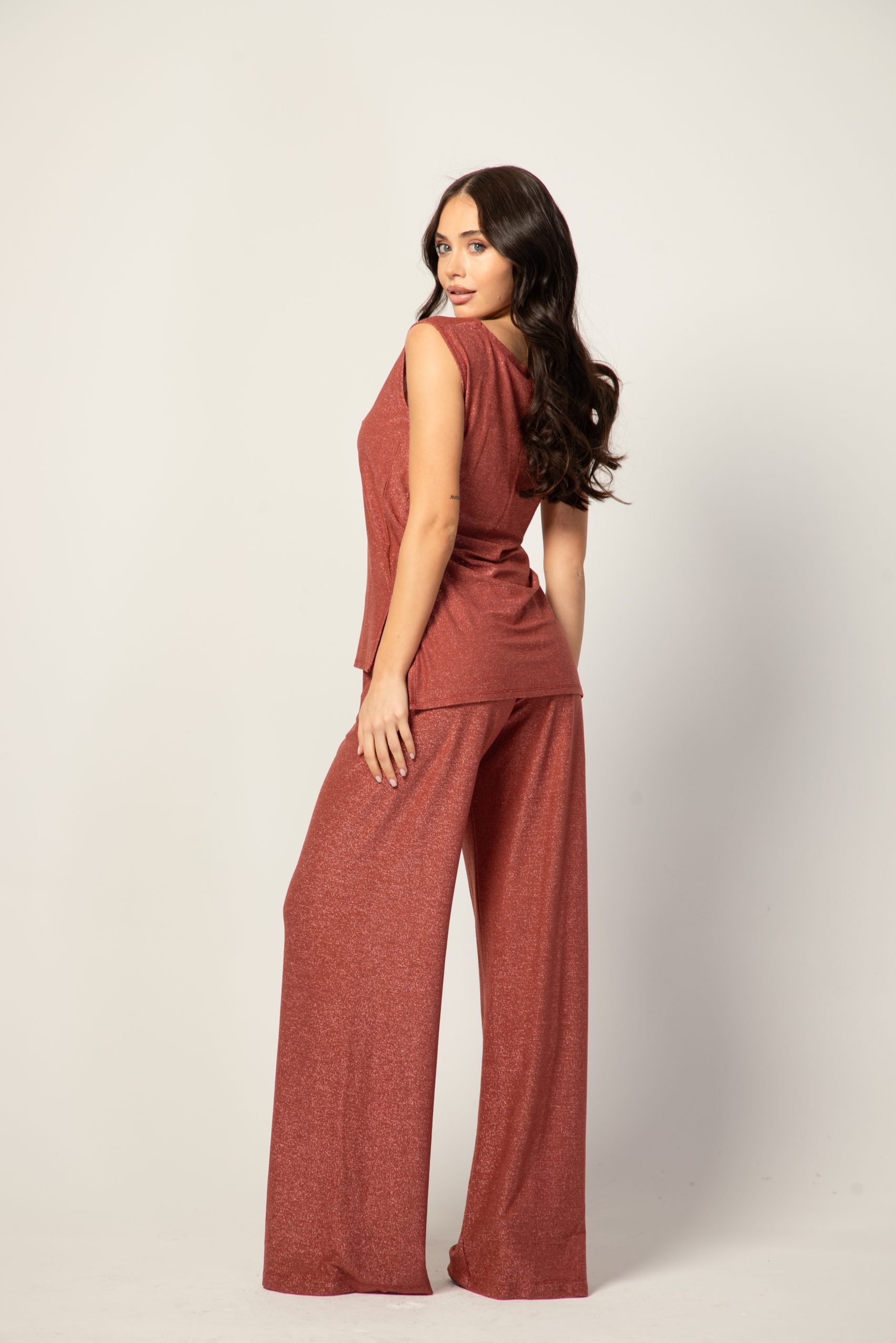 Комплект потник и панталон в цвят брик, стил и комфорт в едно!