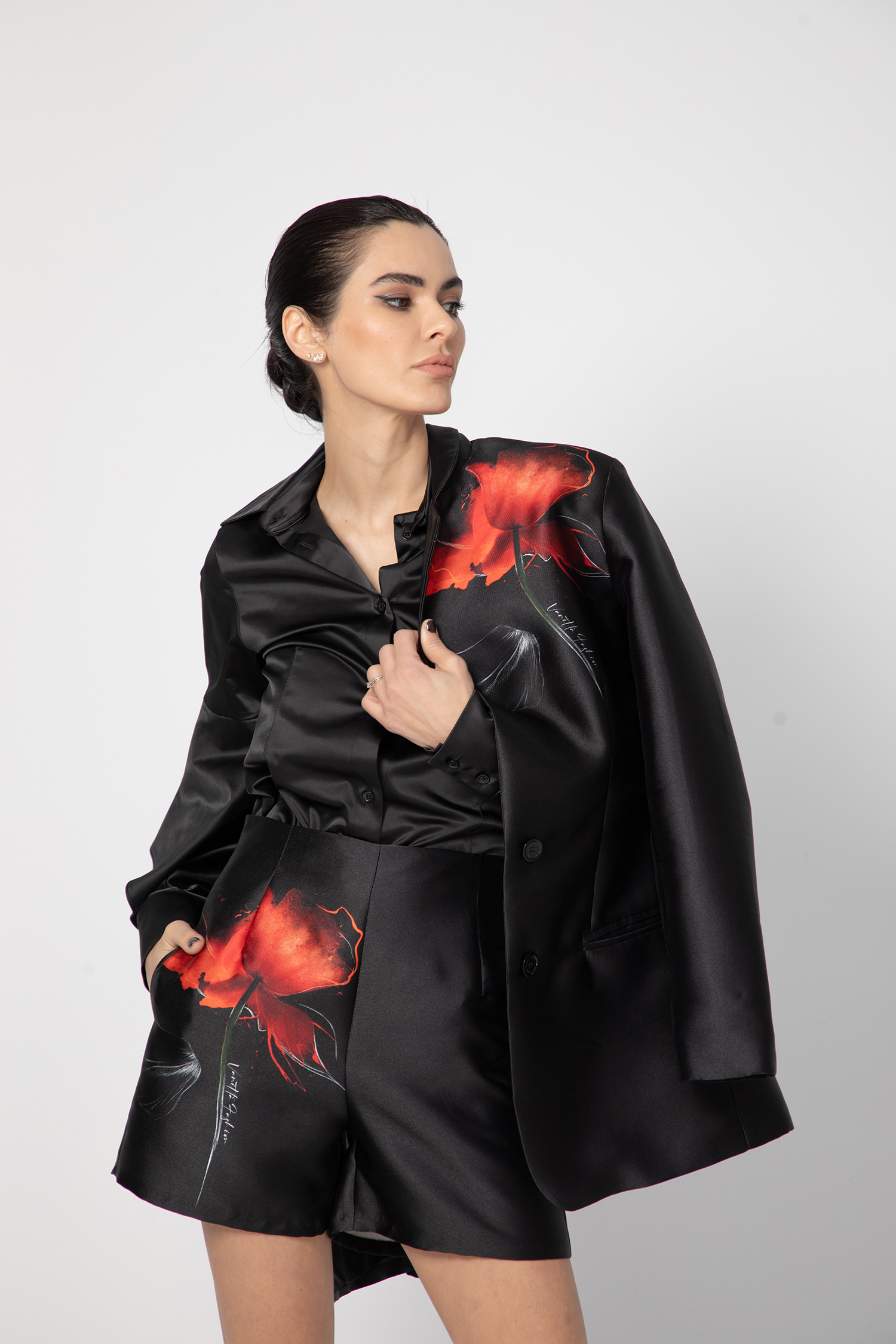 Изделието е изработено от красив плат с елегантна луксозна лъскавина. Може да се съчетае прекрасно с цялата серия – red poppy