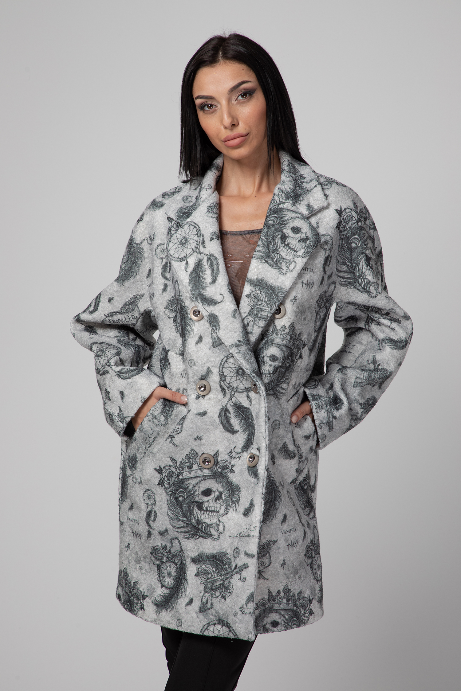 Невероятнo ефектно, модерно и красиво дамско палто изработено в дизайнерски авторски десен.