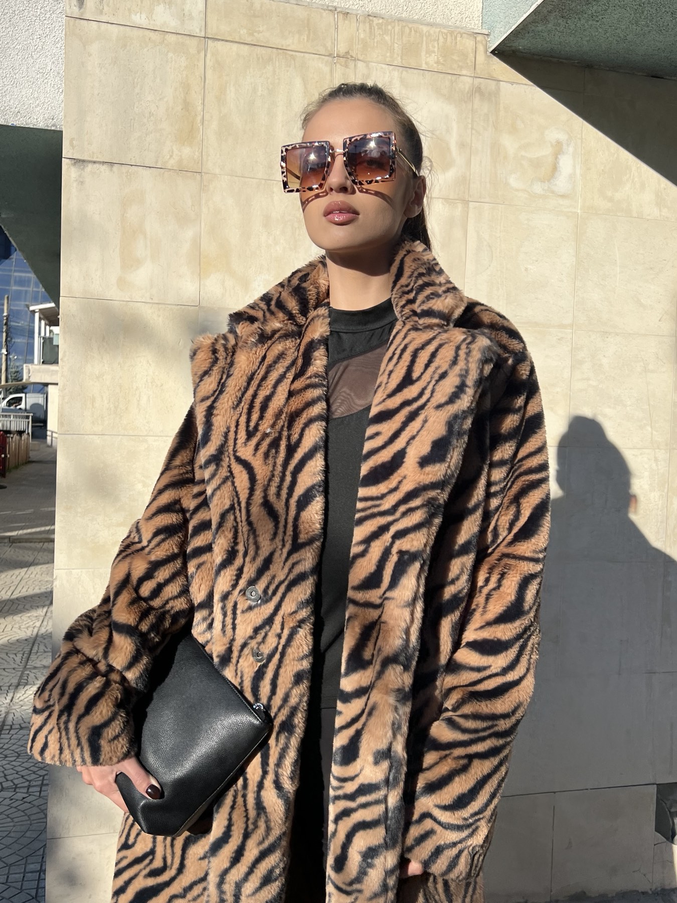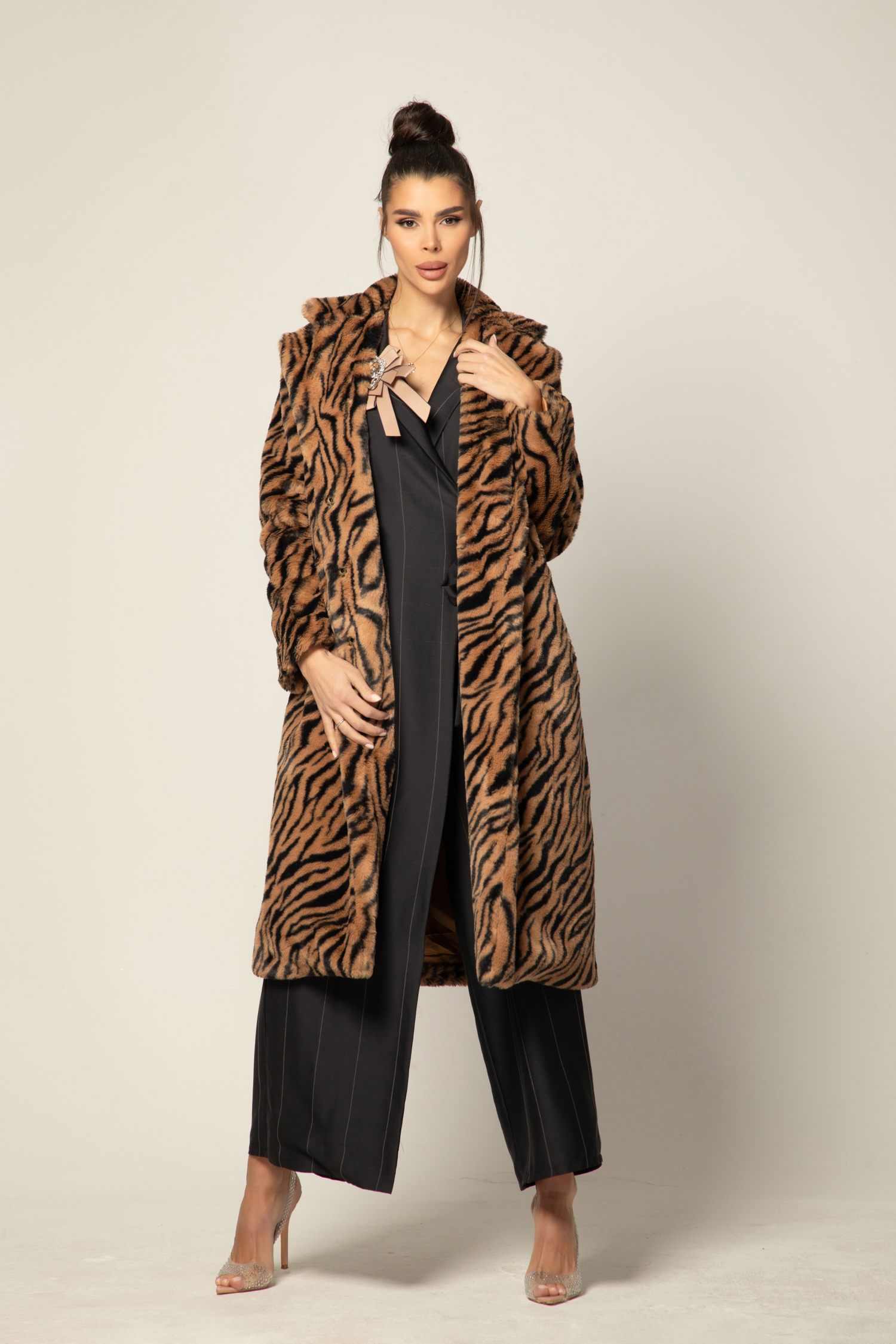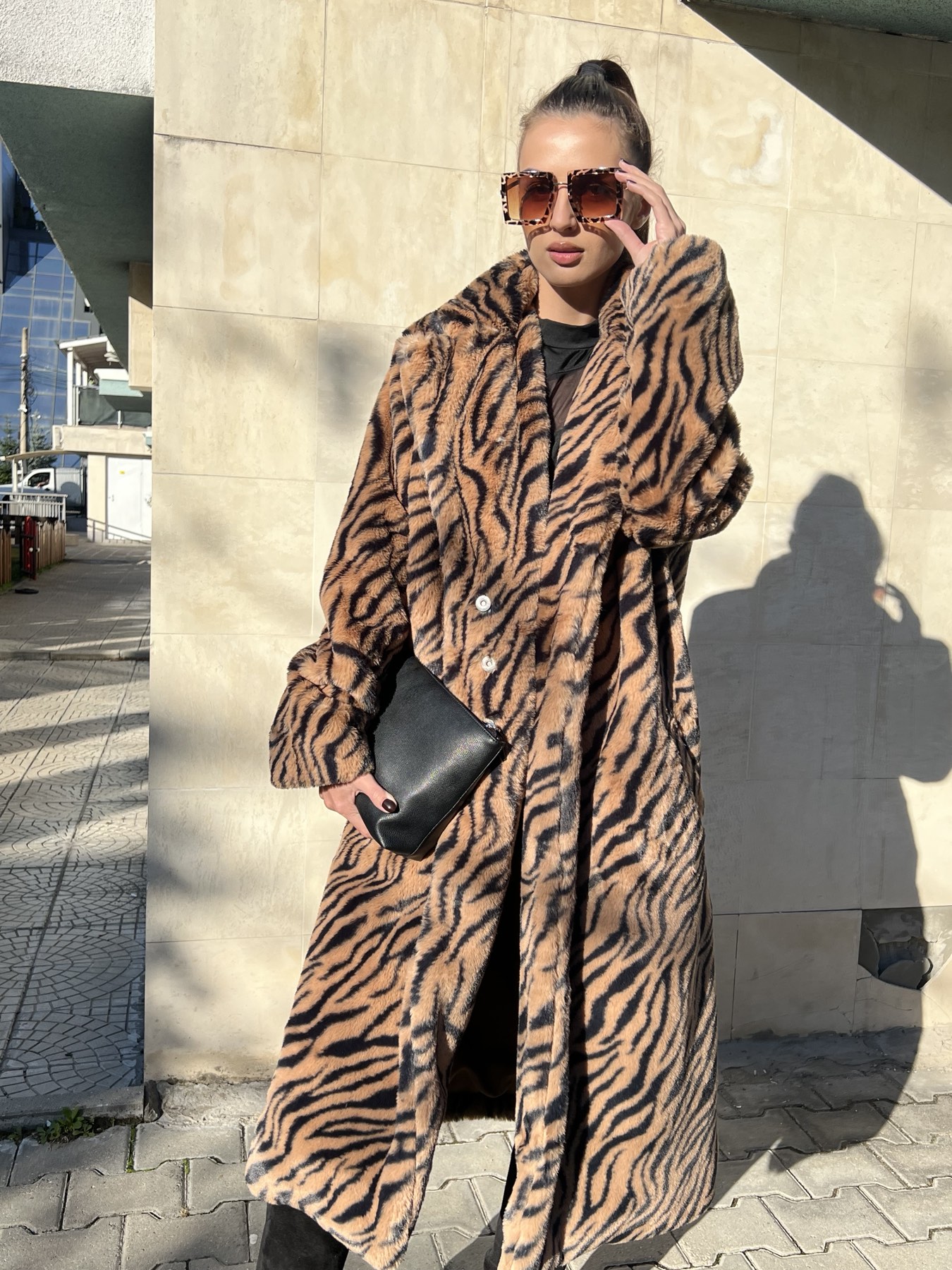 Изработено с внимание към детайла и качество, палтото впечатлява със своята мека и топла материя, която създава усещане за уют в студените зимни дни. Със стилния Animal Print, то добавя модерен и екстравагантен акцент към визията ви