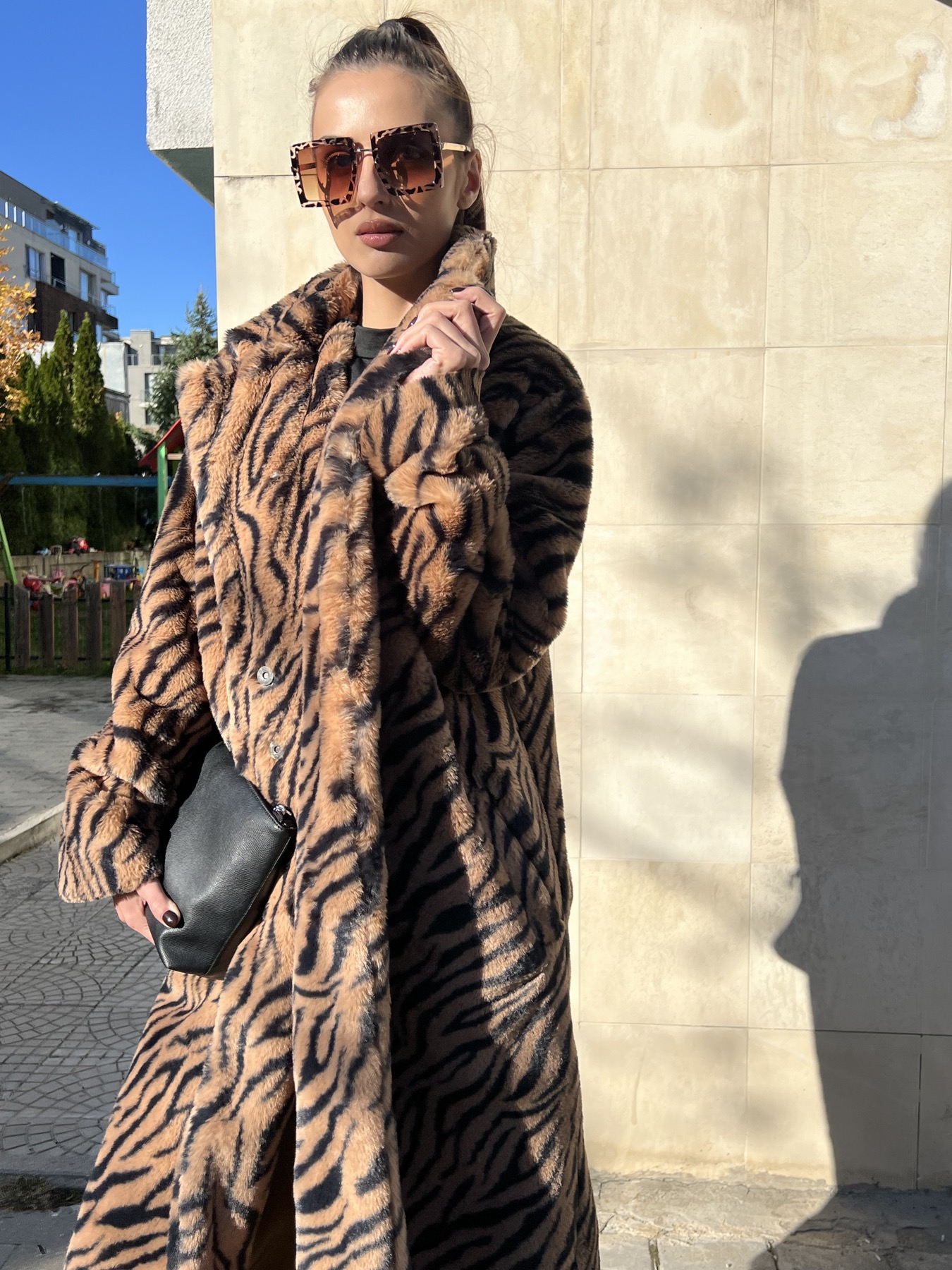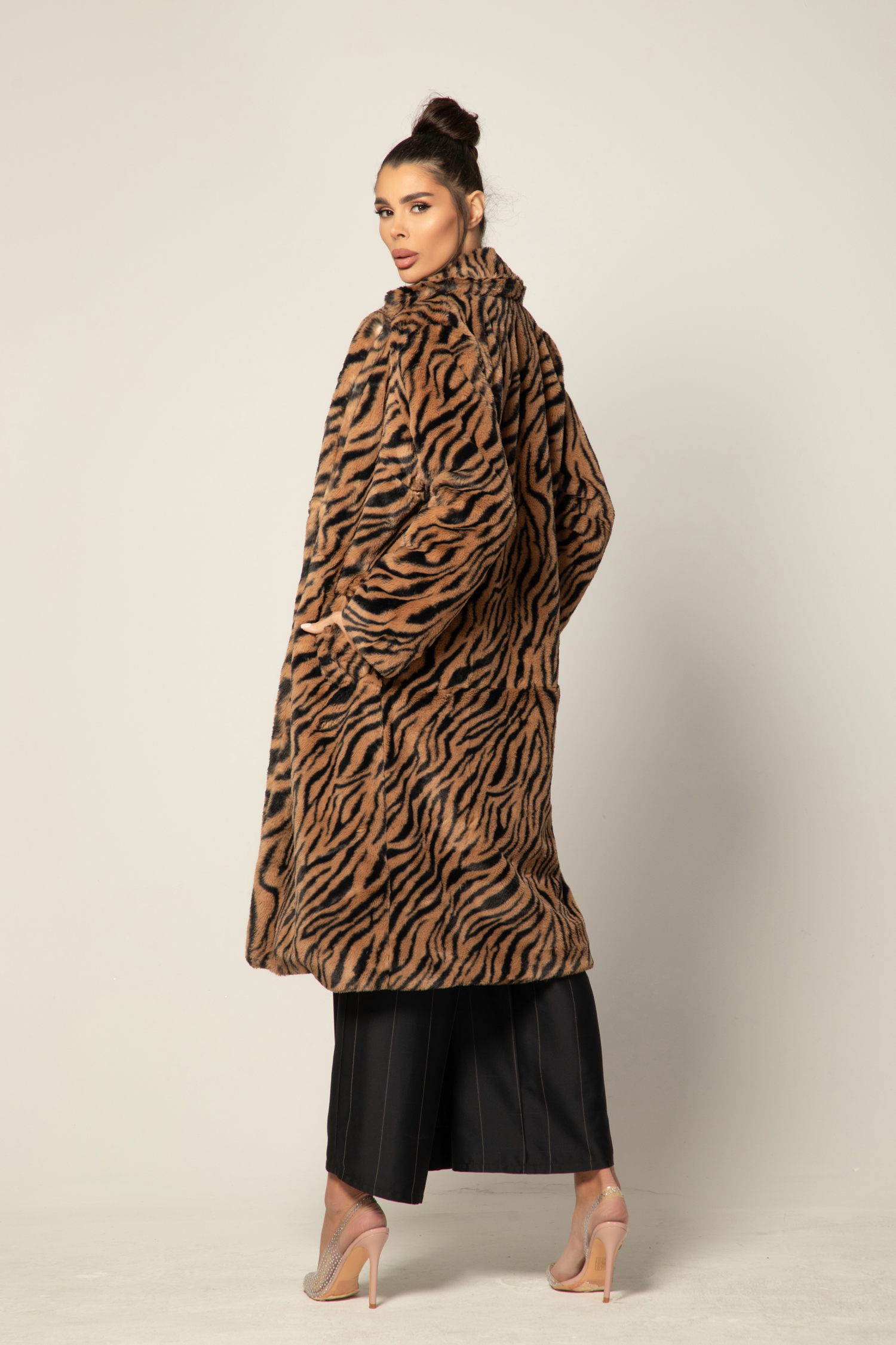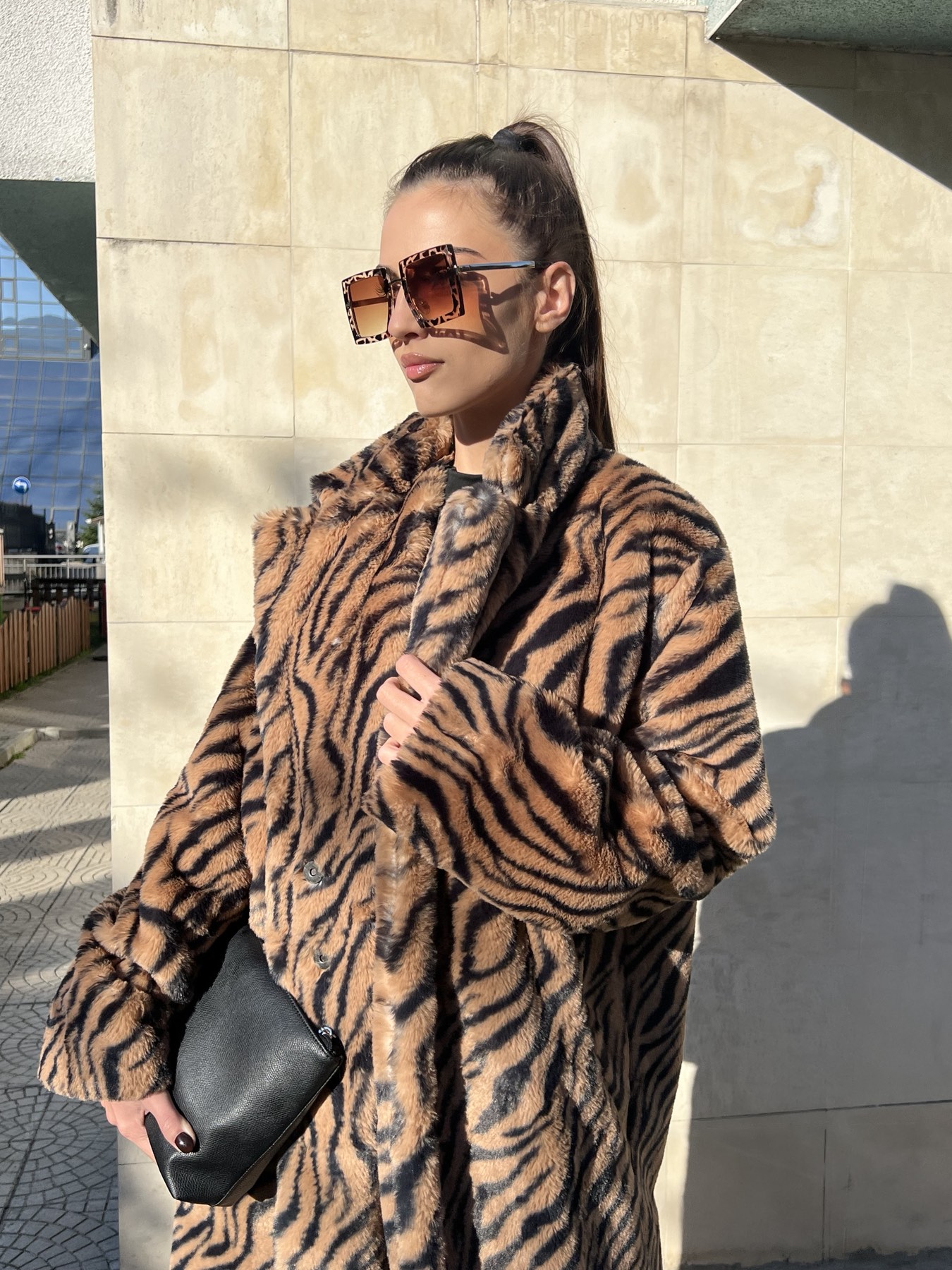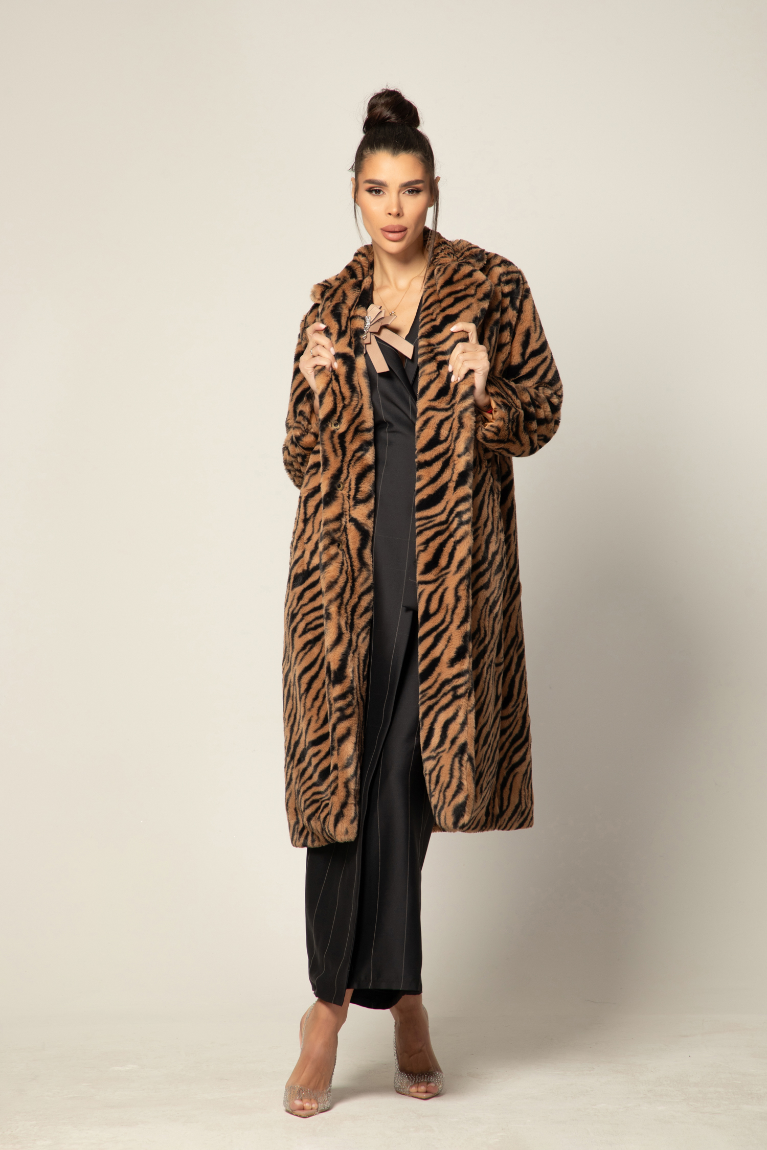 Изработено с внимание към детайла и качество, палтото впечатлява със своята мека и топла материя, която създава усещане за уют в студените зимни дни. Със стилния Animal Print, то добавя модерен и екстравагантен акцент към визията ви