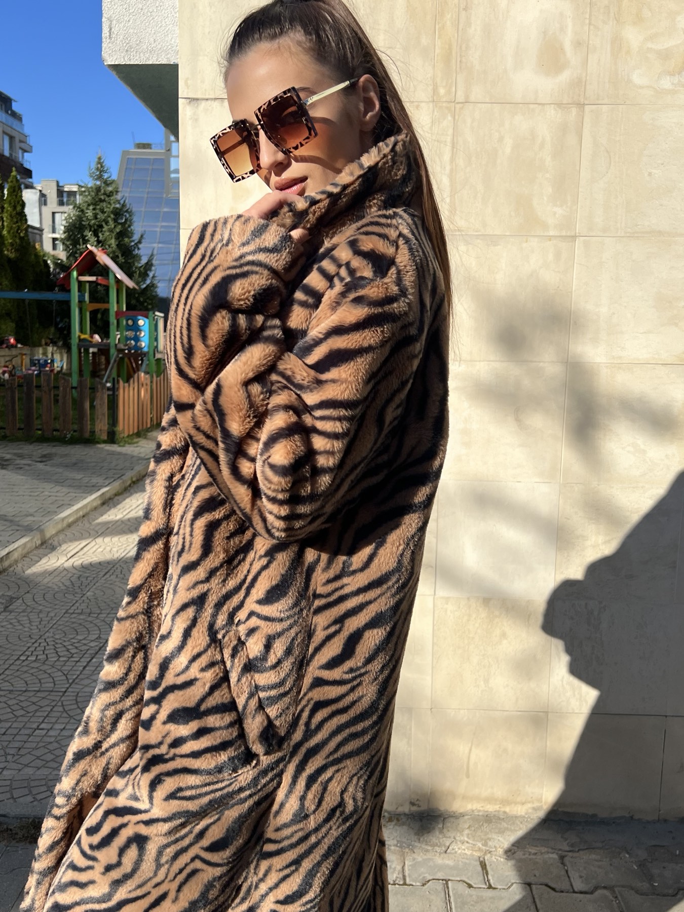Топло, меко и комфортно палто олицетворение на елегантност, изработено от фин еко косъм.