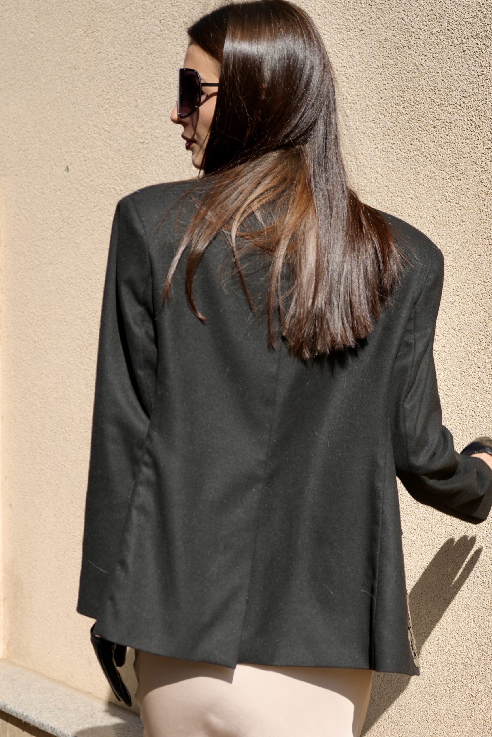 Удължената кройка със структурирани рамена придава елегантност, а блясъкът на пайетите го превръща в акцент във всяка визия.