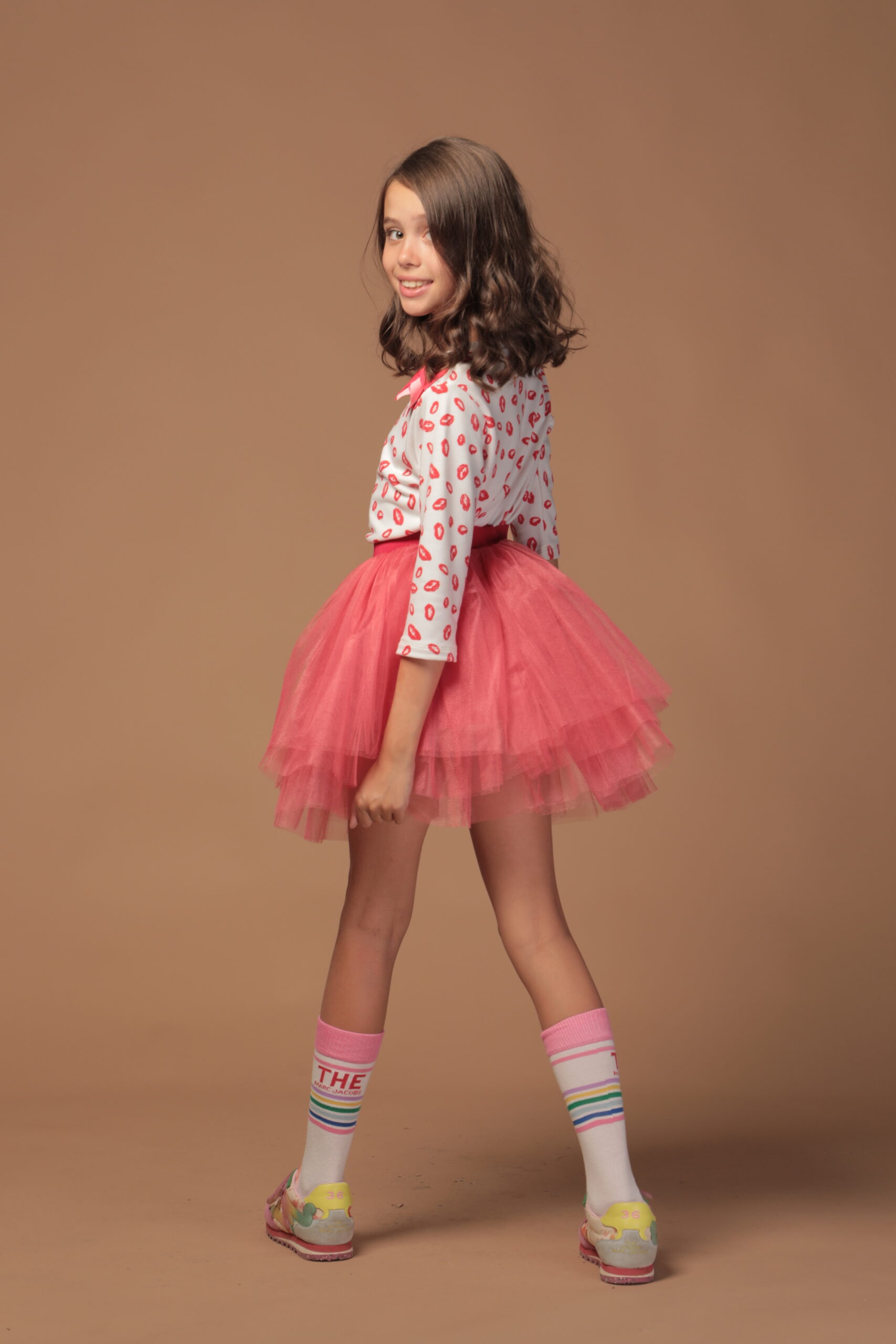 Подходящо да се съчетава в различни визии, по кукленски с пола или по спортен с панталон.
