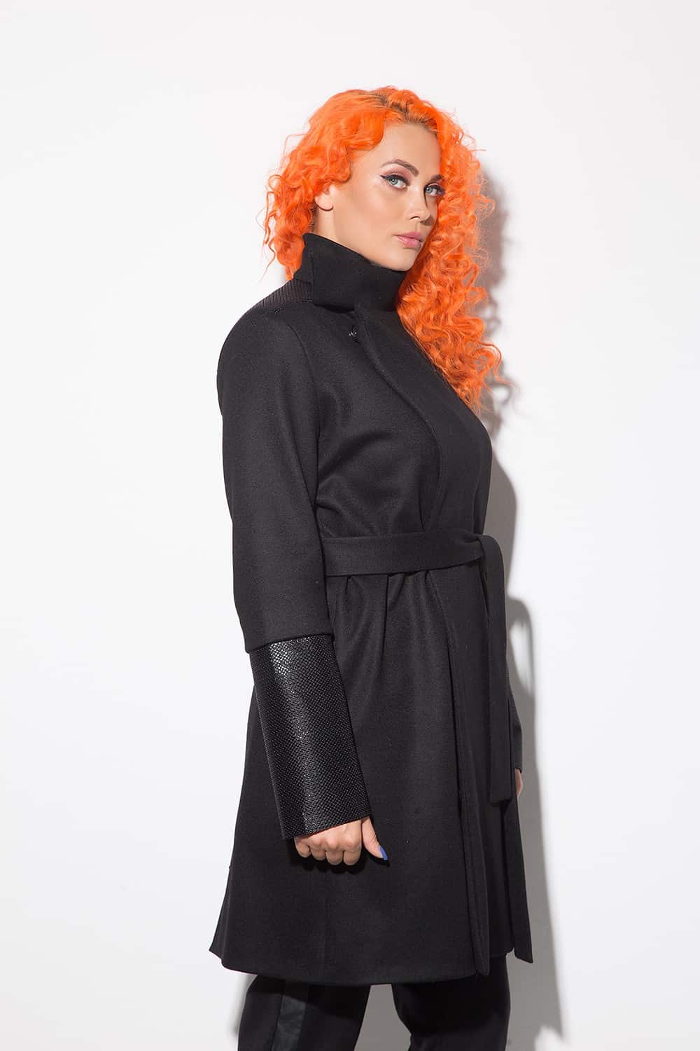 Палтото се предлага с колан от същата материя.