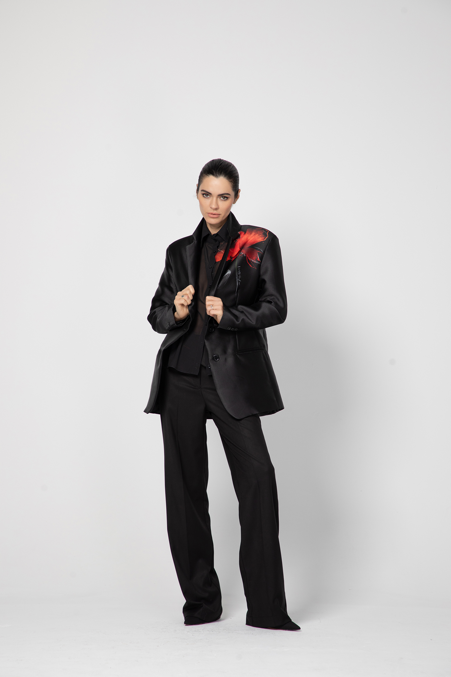 Ризата е с класическа яка, дълъг ръкав с маншети и е подходяща както за елегантни градски визии, така и за по-артистични, модни комбинации. Перфектен избор за жени, които обичат изчистената естетика с дизайнерски почерк.