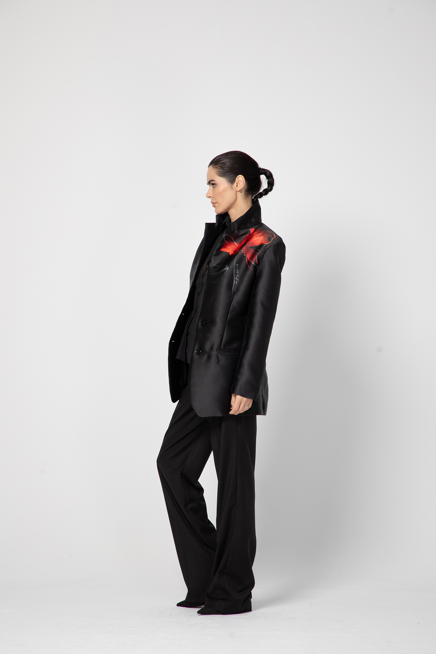 Сакото е с прав силует и по обемни рамене, красива и модерна линия тип – over size, приложимо е в ежедневна и в по-официална визия.