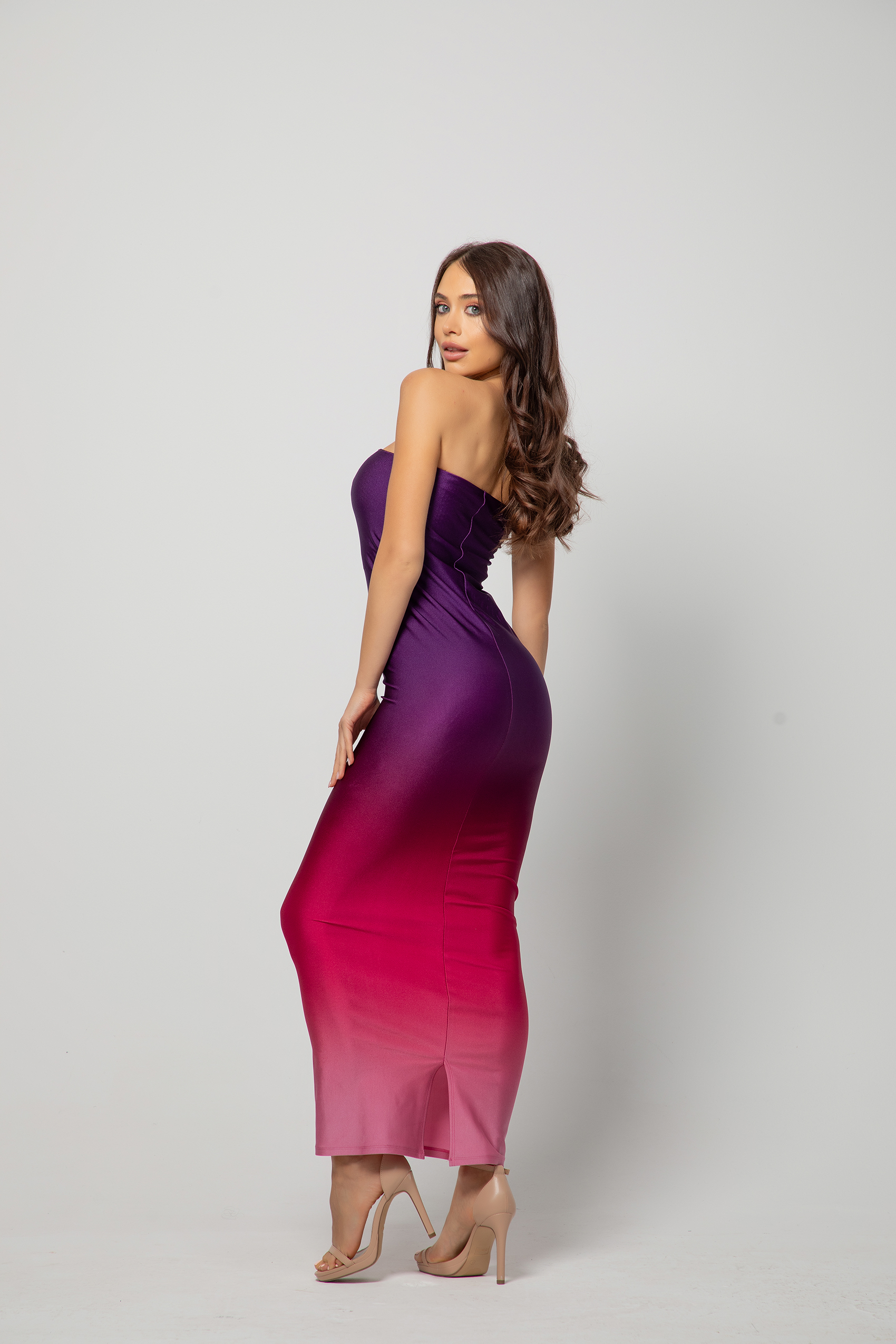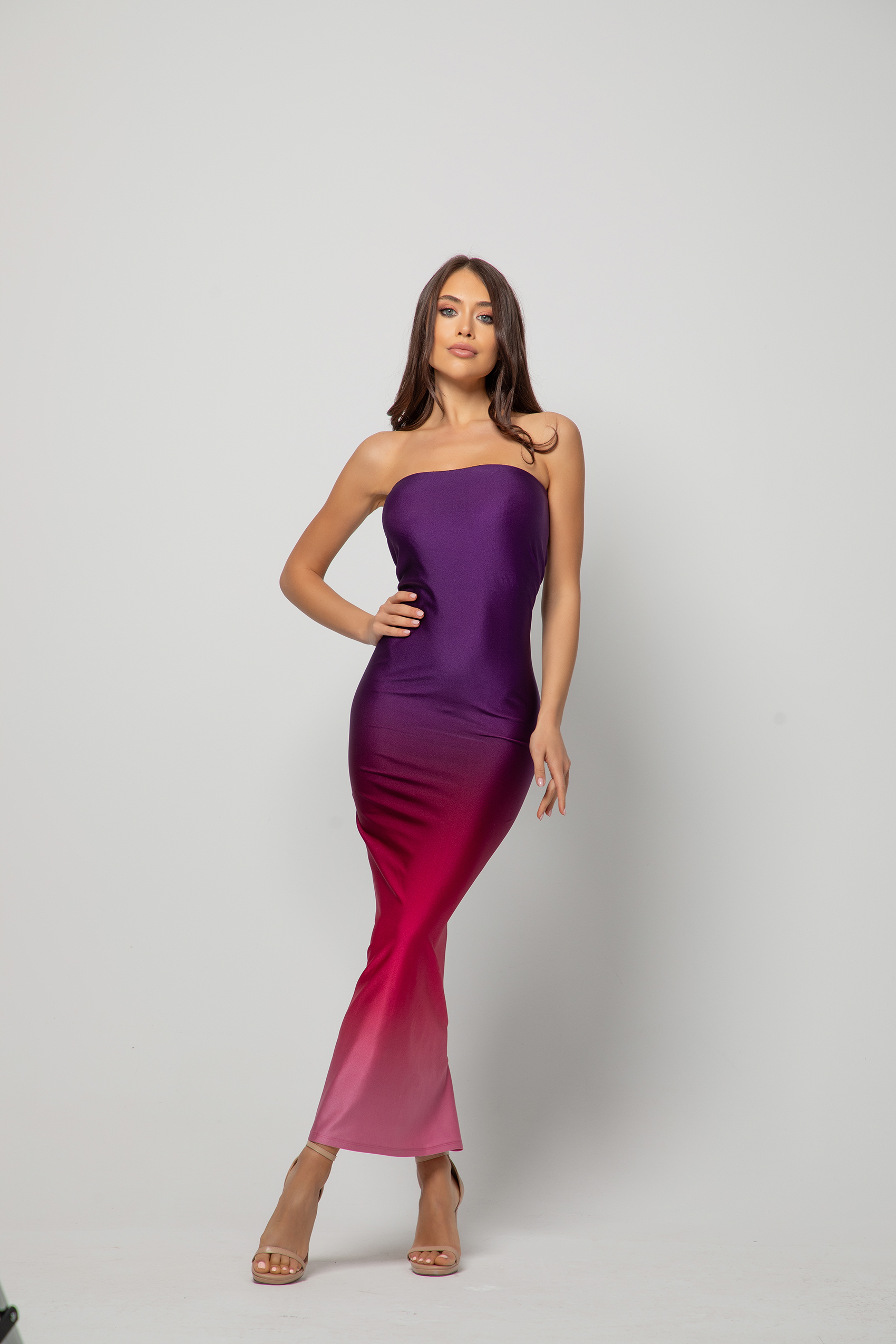 Невероятно красива и изящна рокля, изработена от еластично трико. Колоритен и ефектен преливащ плат, подчертаващ линията на силуета за една женствена и сексапилна визия.