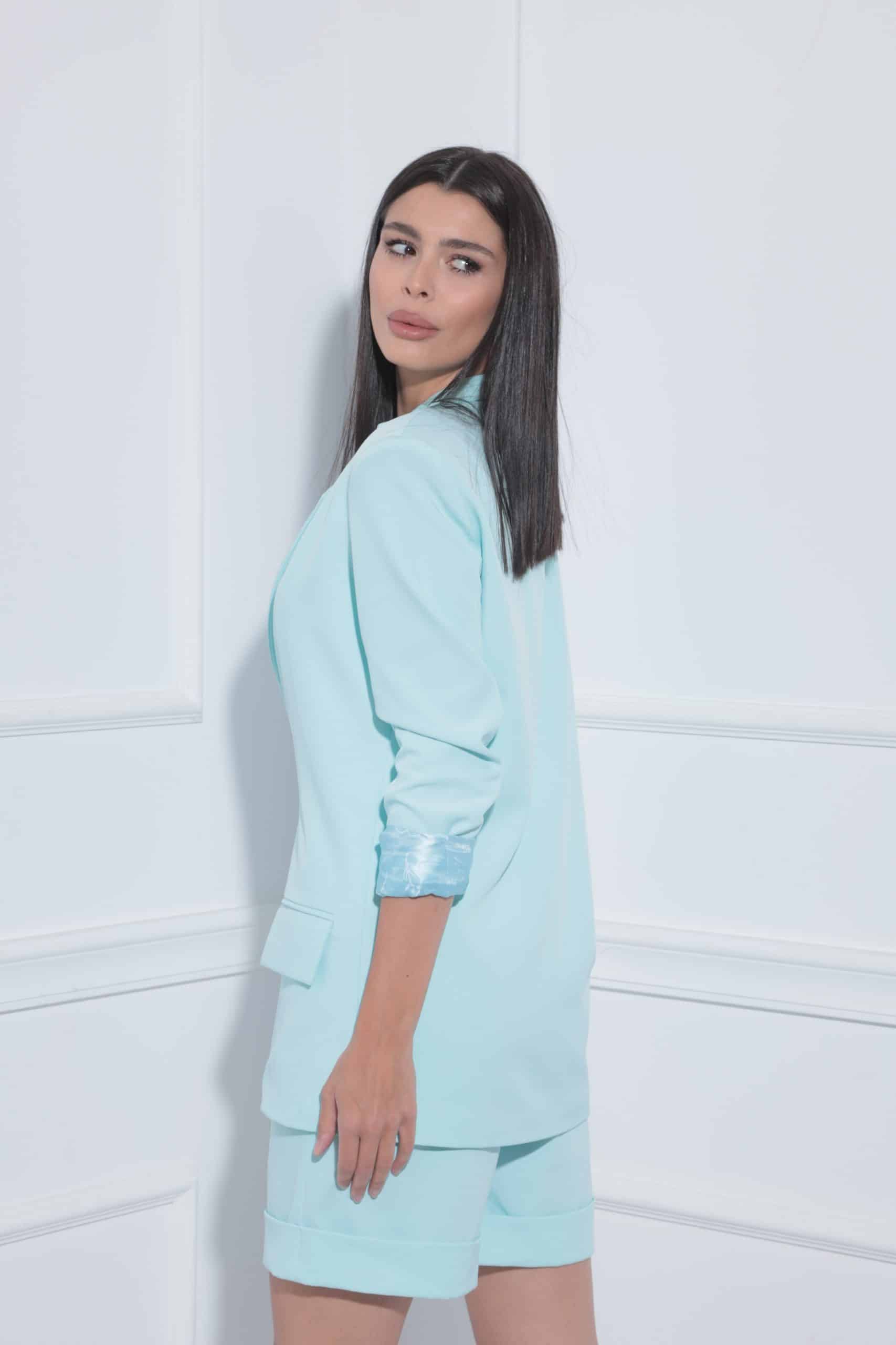 Късо дамско яке от фина метално-лъскава материя, която придава екстравагантност и иновативност.