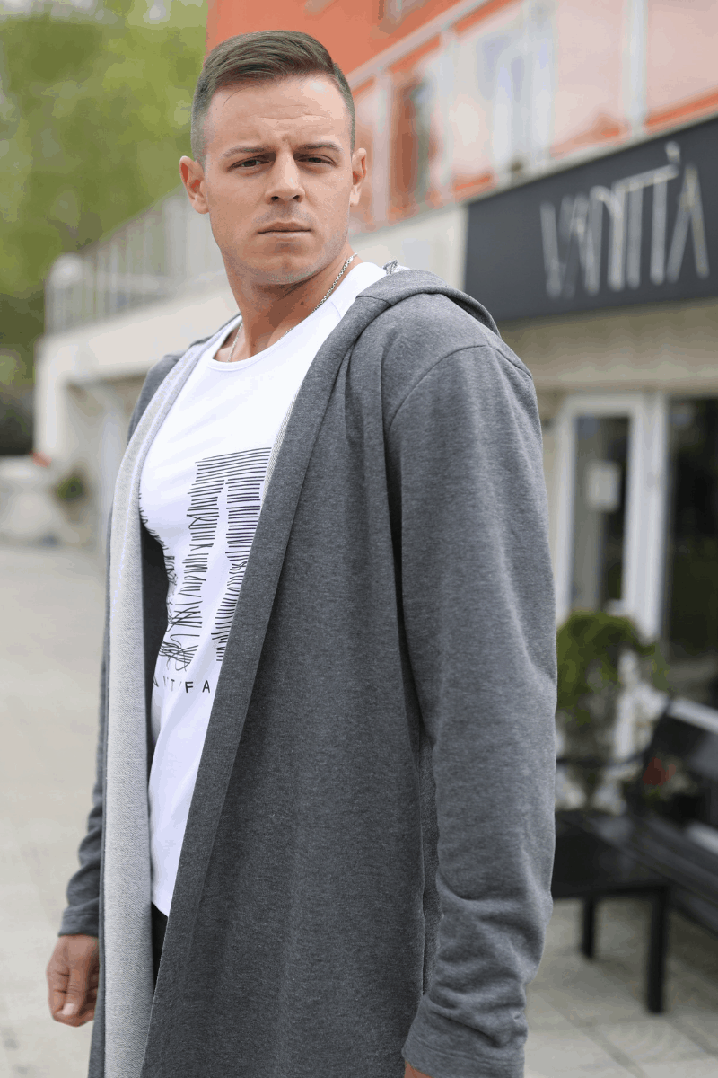 Спортно-елегантна мъжка тениска с качулка, изработена от лека памучна материя.